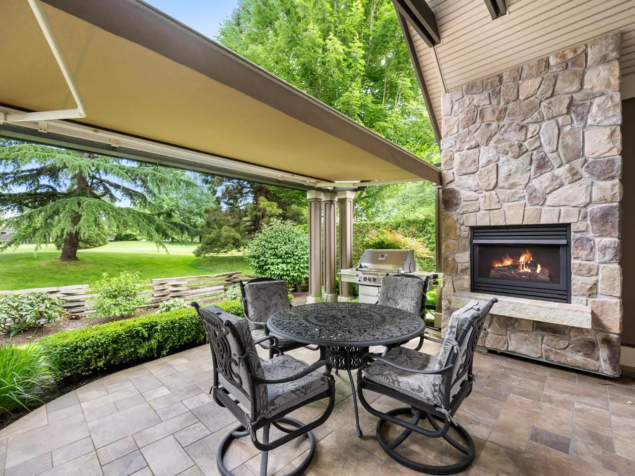 • Covered patio with fireplace
