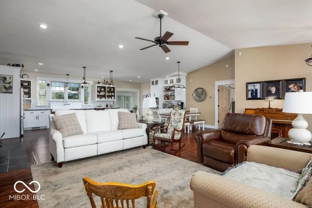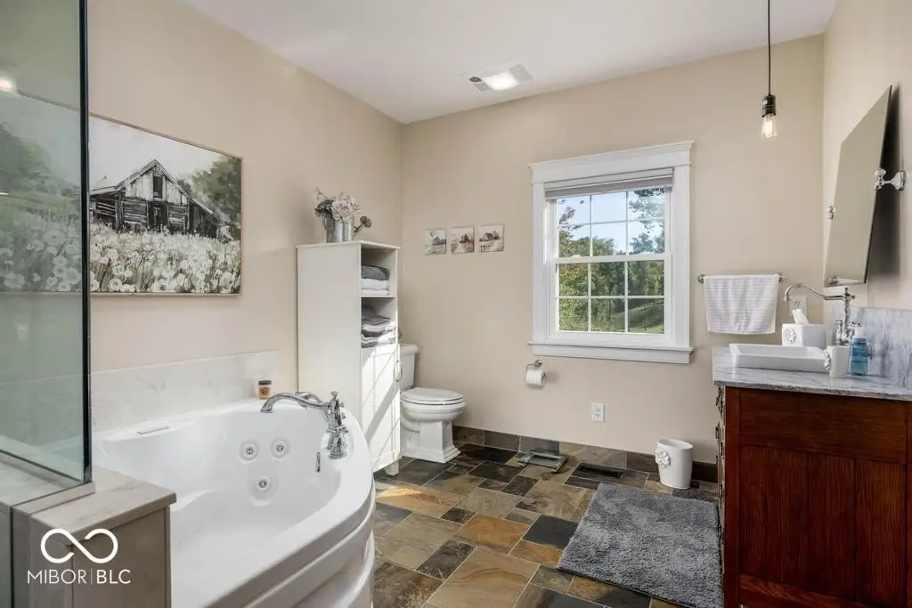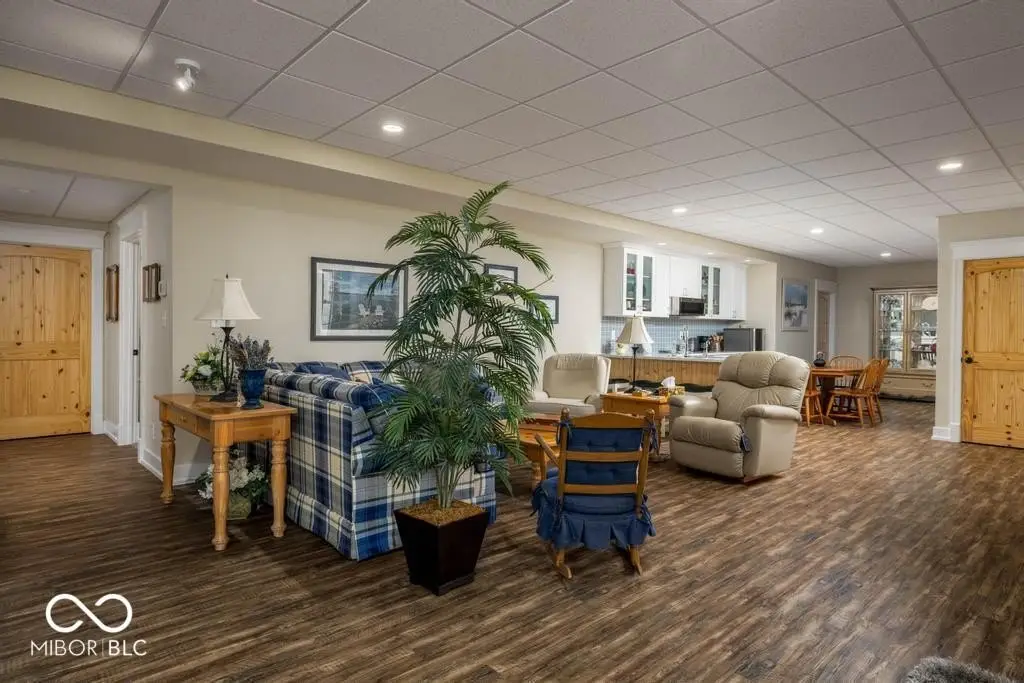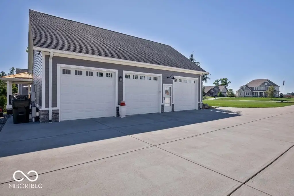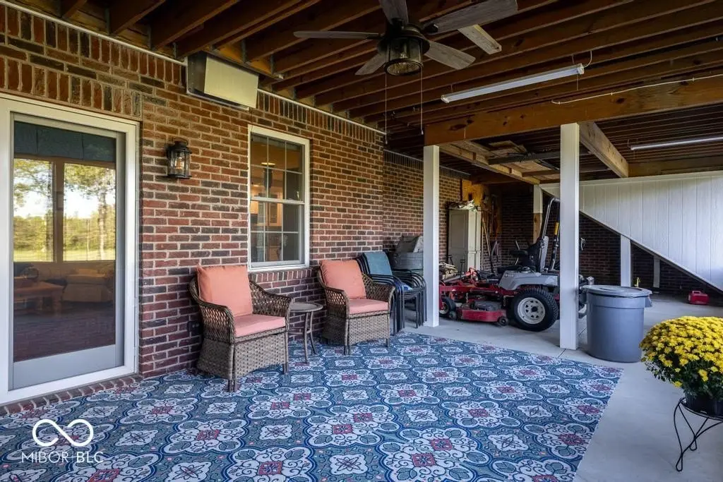 Amazing custom built home in New Palestine on 1+ acre combines top notch quality with comfort for practical living. PB has bath/jacuzzi tub, his/her vanities and his/her walk-in closets. The great room boasts a Jotul wood burning stove, and an 8x7 walk-in pantry for the gourmet kitchen. The laundry/craft room is a dream!! The sunroom has an amazing view of the back yard, you'll enjoy the frequent wildlife visits. The lower level has a walk-out basement with screened-in concrete patio and outdoor garage. The basement game room will be loved by all but could easily be converted to bedrooms 4 & 5 if desired. The downstairs has a laundry facility and kitchenette allowing the lower level to be used as in-law quarters or extended family living. There is a safe room/storm shelter accessible in the basement as well. In terms of construction, the home is spray foam insulated with foam under the basement floor. Reverse Osmosis system upstairs and down, alarm, and outside surveillance. Attached 3 car heated garage has an above-unfinished bonus room with plumbing & gas that will accommodate your storage needs. The home has gravity flow drains, 5 exterior water hydrants that make outdoor living/maintenance easy and enjoyable.