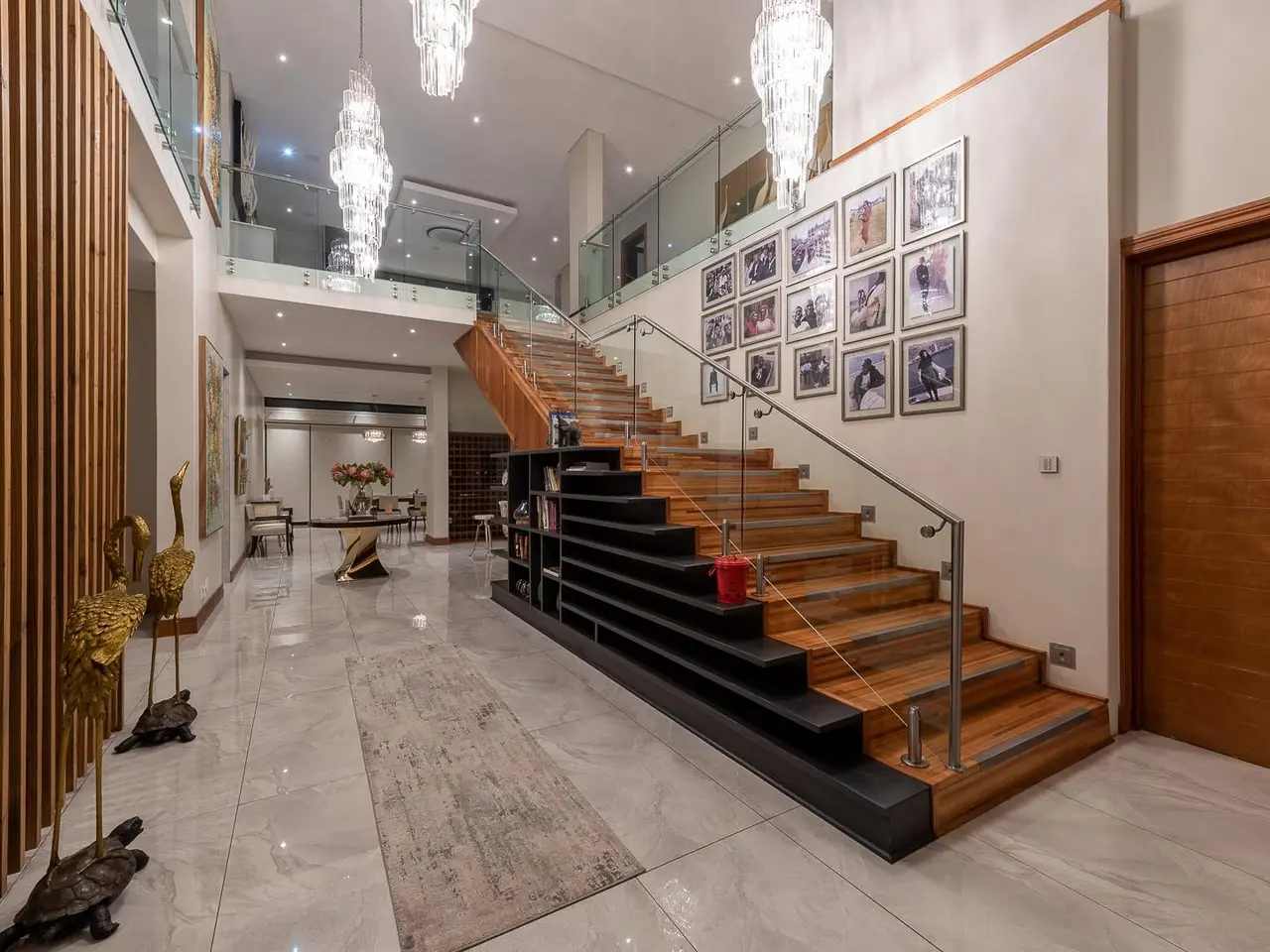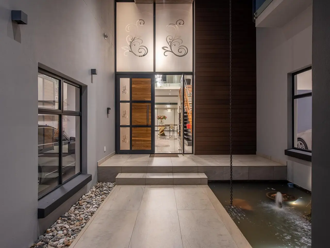 Location, Prestige Nature & Eco Estate, Architecturally Designed Master Built, Family Home & Entertainers Dream. With the use of quality Materials by the best builders in the business, An unmatched Architectural design that affords you effortless flow, allowing natural sunlight to highlight the homes natural beauty from the grand entrance, lit with grand Chandeliers to the formal lounge that opens to the patio and outdoor Pergola, A wine rack with entrance seating for guests to enjoy some delicious Pinot noir. A guest powder room/guest loo, guest bedroom en-suite, TV lounge with blue marble feature wall looking out to gorgeous landscaped gardens, open plan dining bar, living area with a well positioned fireplace for seperation. World class and gourmet chefs kitchen with miele deep fryer, griller, gas stove, oven, microwave complimented with scullery and pantry round off the ground floor living features. A seemless indoor outdoor flow takes you from inside perfection and class to outdoor paradise with eat out dining, boma, built in gas braai, outdoor elegant bathroom with shower and toilet, outdoor cinema and entertainment area with surround sound and projector screen where door stacks open to a beach entry to infinity swimming pool surrounded by rolling green lawns. Lets take you upstairs to Presidential accommodation, 4 oversized bedrooms all luxuriously en-suite with features and fittings that can only be described as class 5 star Hotel suites do not compare. Pyjama lounge with gas fireplace, gym, sauna, study and balconies complete the upstairs level. Full Home automation, aircons throughout, central vacuum, surround sound, cameras, staff accommodation, mounted generator, inverter system with solar panels, pool heat pump, 4 garages with direct access to the home and more. Call for exclusive viewing. *Extreme care has been taken to ensure that all representations contained in this advertisement are accurate and is provided on an GÇ£as isGÇ¥ basis with no guarantees whatsoever. The representations herein has not been compiled to meet a PurchaserGÇÖs individual requirements and it remains the PurchaserGÇÖs sole responsibility to inspect the property duly prior to entering into any purchase agreement. The representations herein does not constitute the terms of sale as the images and descriptions are merely indicative. Chas Everitt assumes no responsibility for any errors and we reserve the right to correct/change/update the advert at any time without prior notice.*