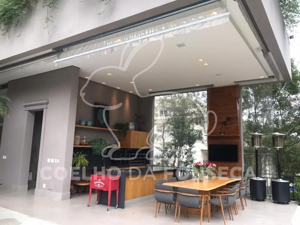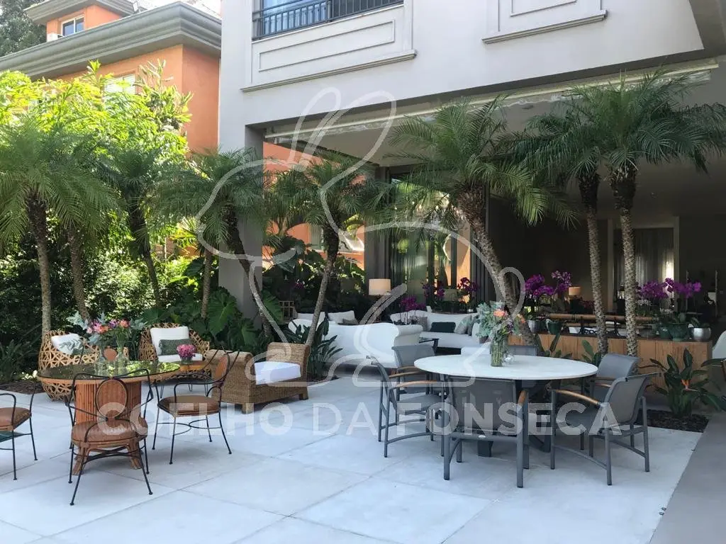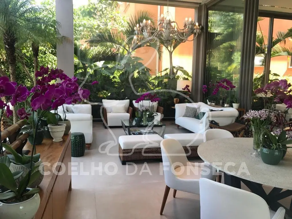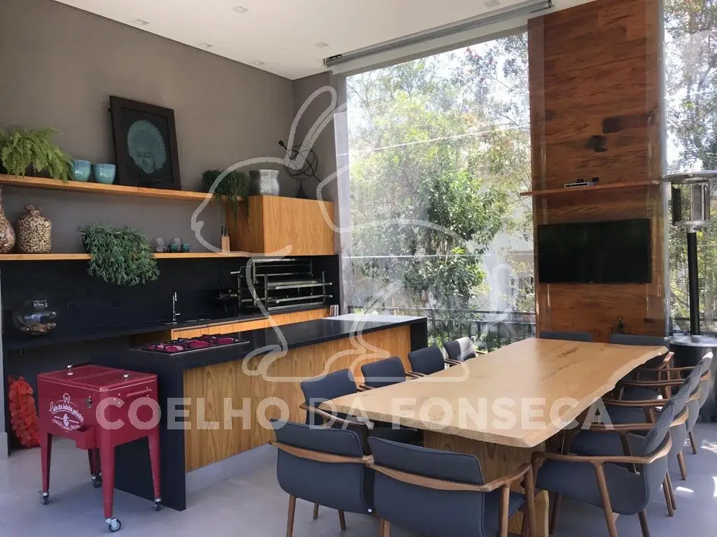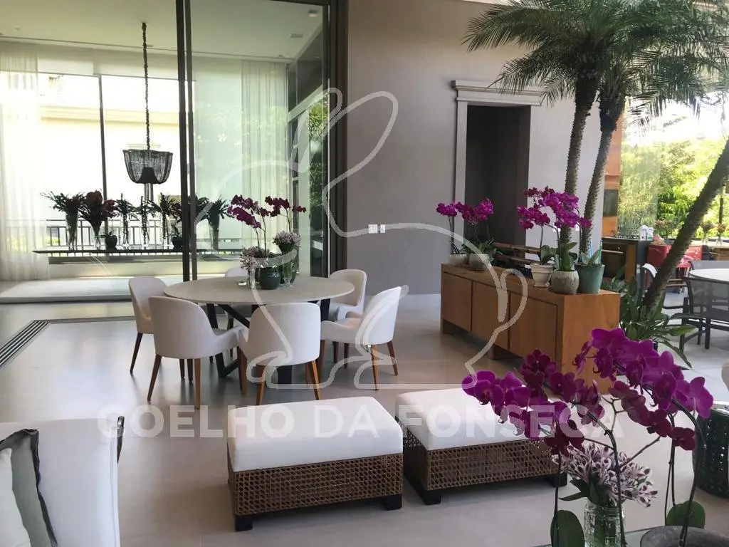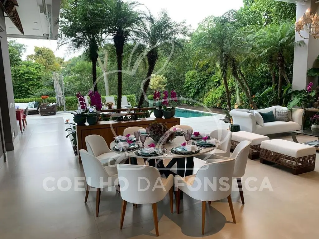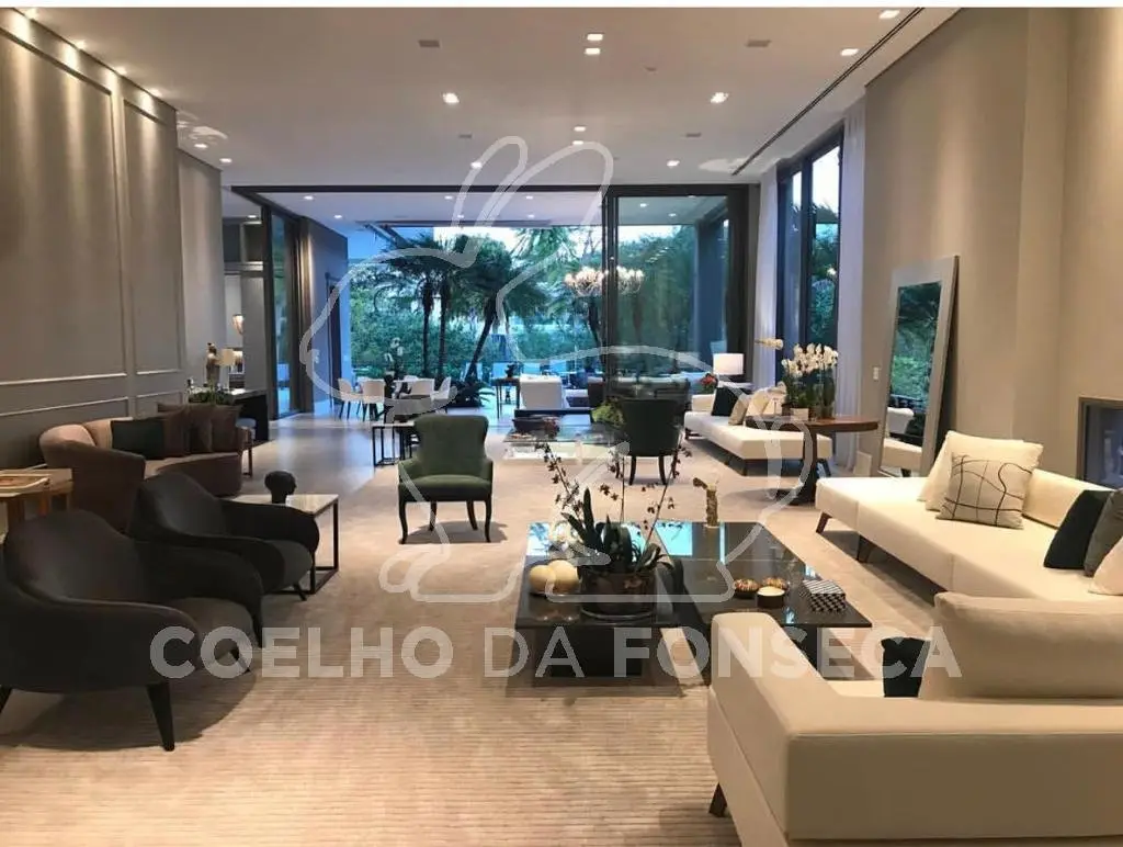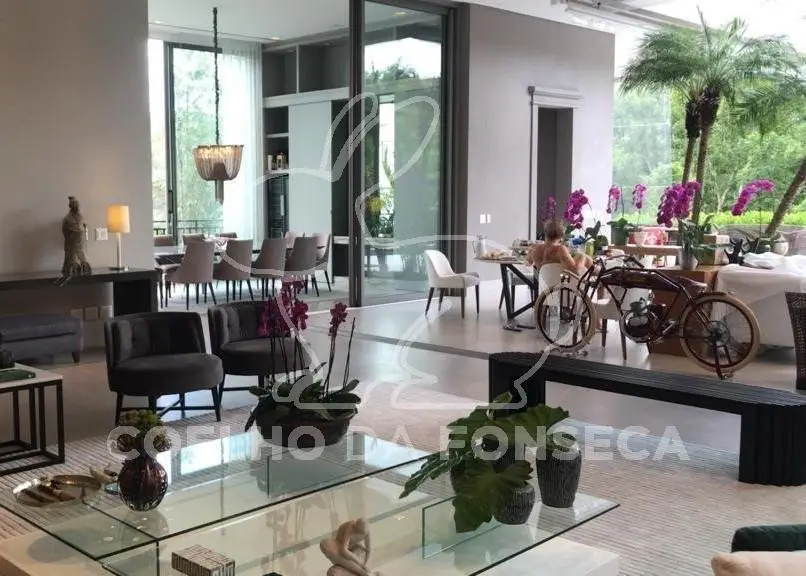 Beautiful high-end home surrounded by lush landscaping with a vertical garden; Entrance hall with 8 m high ceiling; Living room for several environments. Home theater with fireplace, the entire ground floor in porcelain tiles imported from Italy and 4.5 m high ceiling. Office. Lavatory in Silver Travertine marble, Kitchen with pantry. There are 5 suites full of cabinets, all with closets, the master with a closet and his and hers bathrooms and a whirlpool bath. Intimate room with integrated home theater and fireplace. Support pantry. Integrated gourmet space, barbecue, heated swimming pool covered in Hijau stone. OTIS elevator for 10 people that serves: Garage, ground floor and 1st floor. Style Aluminum frames, central air conditioning. ID Móveis carpentry. Basement: garage for 8 cars, space for a gym, game room, large laundry room, 2 suites and pantry for employees.