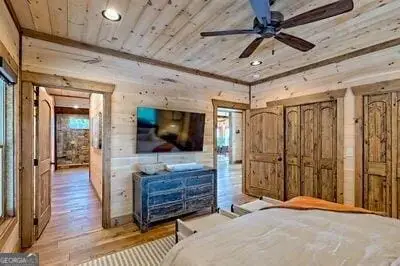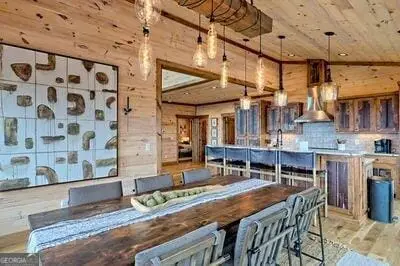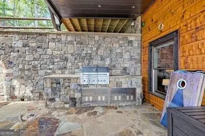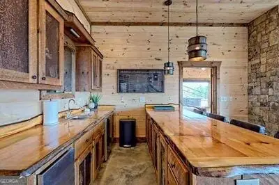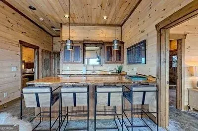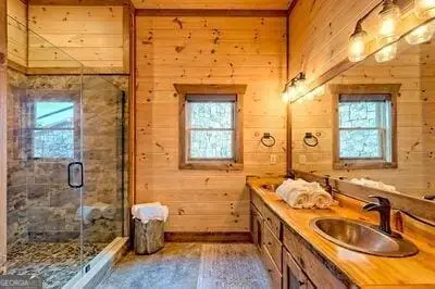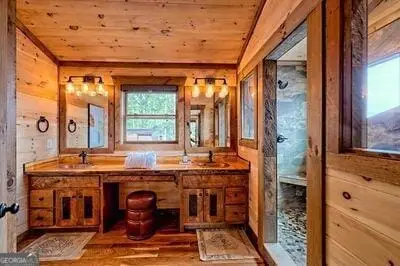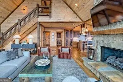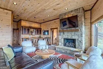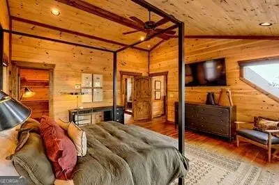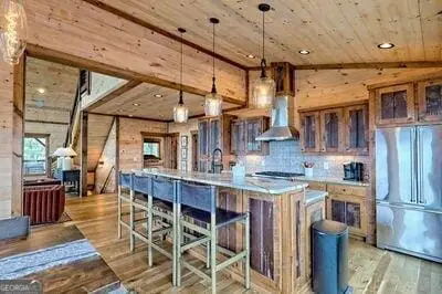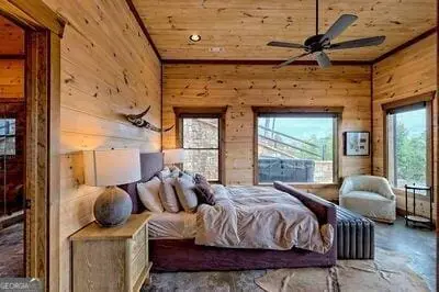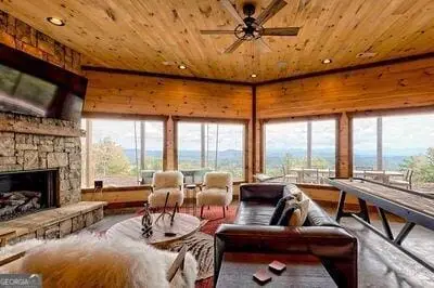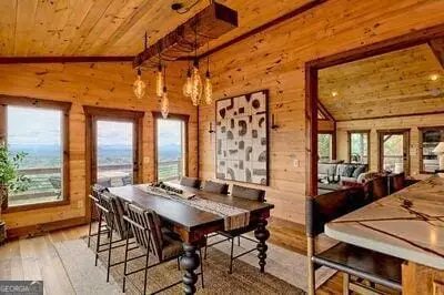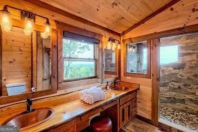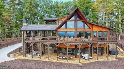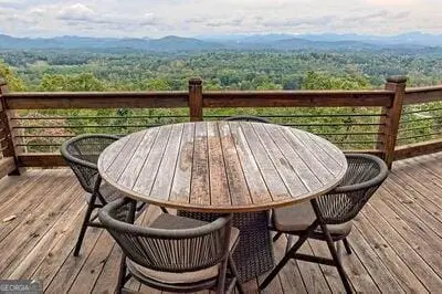 Perched in the peaceful North Georgia mountains, 506 Tower Rd in Mineral Bluff offers the perfect blend of rustic charm and modern elegance. This stunning, designer furnished 4-bedroom, 4.5-bath home boasts an open, airy layout with vaulted ceilings, rich hardwood floors, and expansive windows that fill the home with light while framing the breathtaking views. The gourmet kitchen is a chef's dream, complete with high-end appliances and custom finishes, ideal for both everyday cooking and entertaining. The spacious great room, centered around a cozy stone fireplace, provides the perfect spot for gathering with friends and family. Step outside to the sprawling deck, where the fresh mountain air and gorgeous views create a peaceful retreat for relaxation or outdoor entertaining. The primary suite is a luxurious sanctuary, offering spa-like amenities and private access to the outdoors, while the additional three bedrooms each have their own en-suite baths, providing privacy and comfort for family and guests. With proximity to world-class hiking, trout fishing, and the charming town of Blue Ridge, 506 Tower Rd is a mountain retreat where luxury meets nature, perfect for both relaxation and adventure.