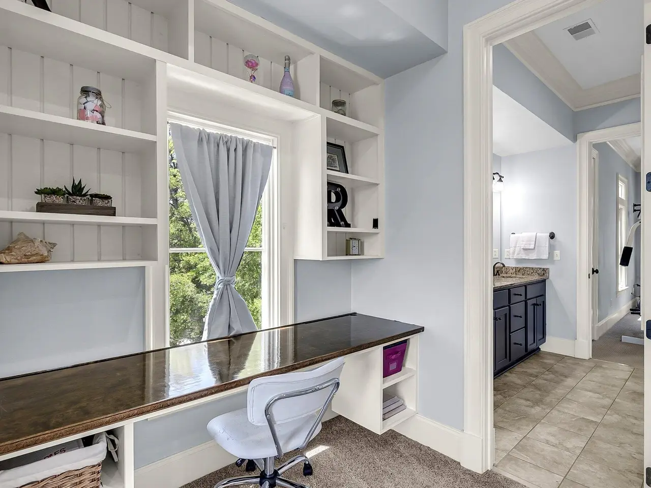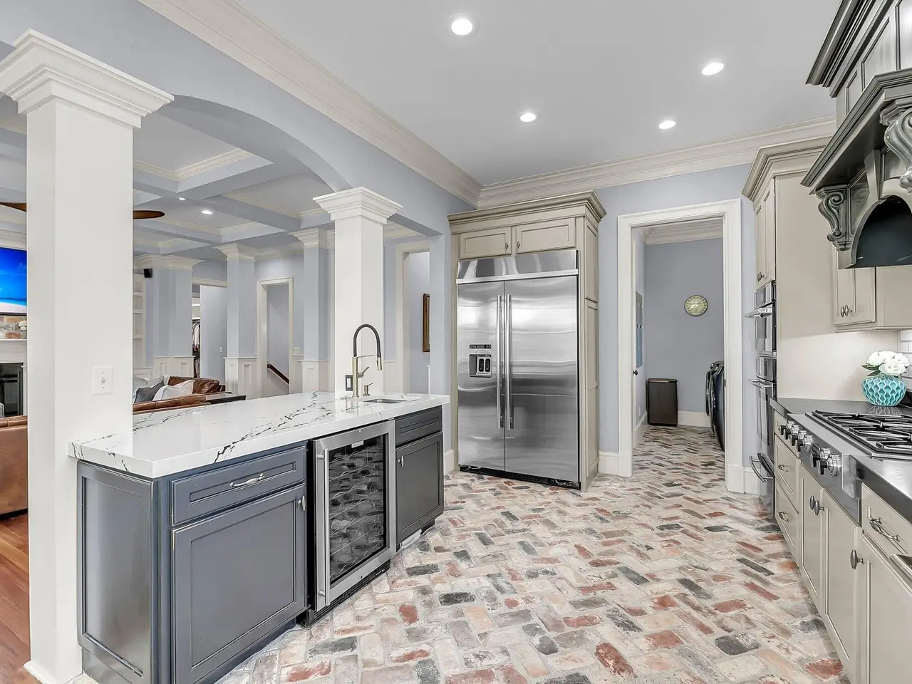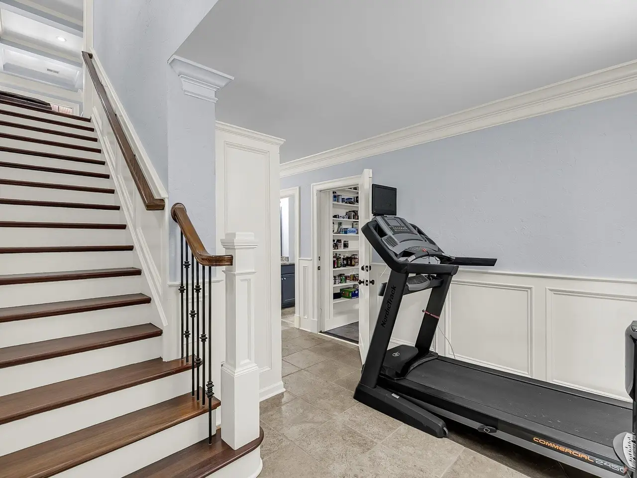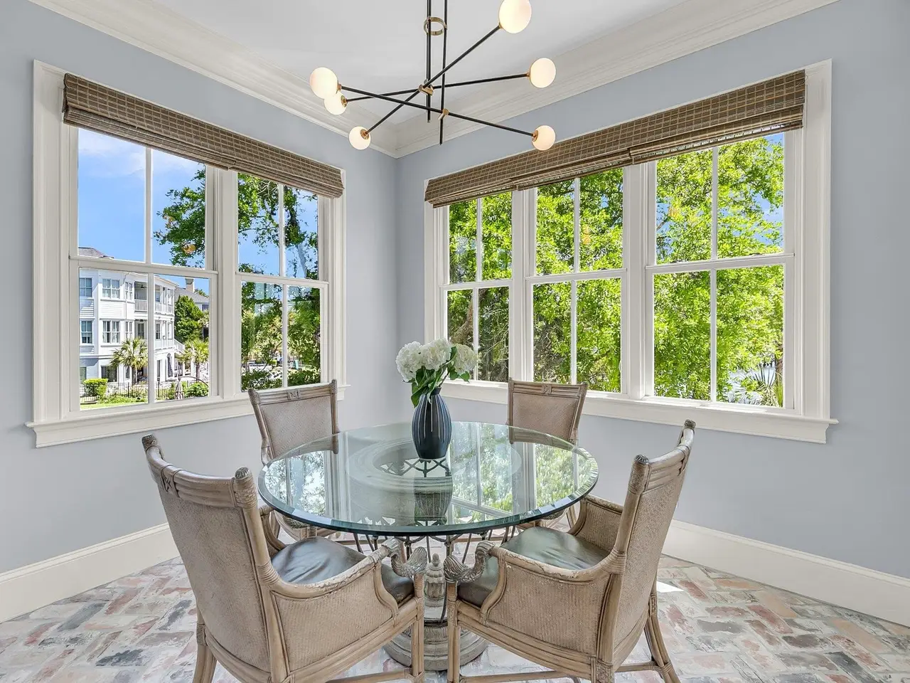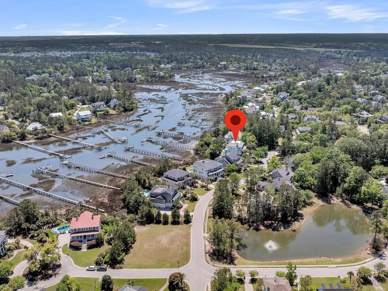 If you've been dreaming of panoramic waterfront views framed by swaying palms and a sparkling saltwater pool with spa, this custom designed Lowcountry retreat is your dream come true. From the moment you arrive, you're welcomed by a grand double staircase encircling a signature palm tree and custom-welded wrought iron railings. Gas lanterns frame a stunning solid mahogany entry door, setting the tone for the elegance and craftsmanship found throughout the home. Thoughtfully designed to capture the beauty of its setting, the open-concept main floor flows effortlessly from a dramatic double-story foyer into the great room, kitchen, breakfast area, and spacious primary suite--all opening to a large, screened porch with breathtaking views of the water and pool. A Butler's Pantry leads tothe formal dining room, and a walk-in laundry, pantry, and powder room complete the main living level. The great room features a coffered 10' ceiling, a gas fireplace with custom built-ins, and a wall of windows and French doors bringing the outdoors in. The gourmet kitchen boasts a large island, custom cabinetry, and premium Jenn-Air appliances including a 48" refrigerator, 6-burner gas cooktop, and beverage cooler. Enjoy waking every morning to a serene waterfront sunrise view from the expansive primary suite, complete with dual walk-in closets, a soaking tub, separate vanities, and a luxurious walk-in shower. Upstairs, four oversized bedrooms (two with ensuite baths, two with a shared Jack and Jill bath), a second laundry room, and a versatile bonus room with a private sun deck offer comfort and flexibility for family and guests. Outside, paradise awaits. The heated and cooled saltwater pool with integrated spa, sun shelf, fountains, and water features is a showstopper. The spacious patio invites sunbathing, entertaining, and peaceful relaxation, all while overlooking your private dock with boat lift and floater, perfect for swimming, fishing, or exploring the waterways by boat! The ground level offers a finished suite with full bath, large living area, second 48" refrigerator, additional storage closet, a walk-in storage room, enclosed workshop, and 3-car garage. Park West Amenities, paved walking paths throughout the community, 3 primary to middle schools, and a Mount Pleasant Recreation complex offer the perfect setting for families! Located in the heart of the Lowcountry, this home is a rare opportunity to own a waterfront sanctuary that seamlessly blends casual elegance, generous space, and the best of indoor-outdoor living!