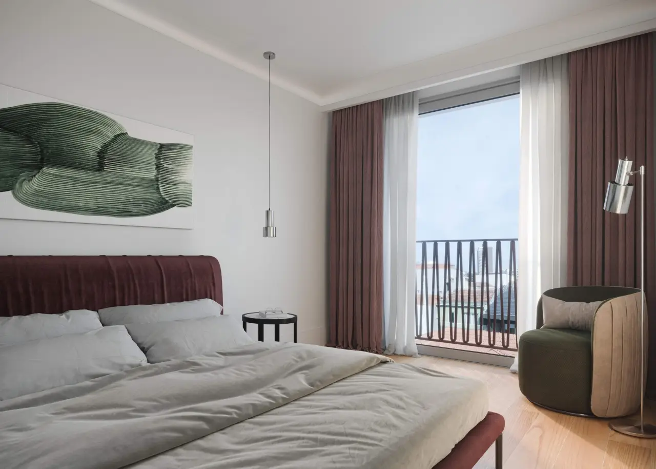 Located in downtown Porto, the Bonjardim development is an architectural project with 93 new apartments ranging from studio to four bedrooms, with noble materials and unique design details where tradition meets a contemporary side in the heart of Porto. The apartments, with areas between 35 and 200 m2, are spacious, with high quality finishings that add elements of sophistication and well-being, such as windows with lacquered aluminum frames and aluminum blinds, which ensure maximum comfort in the city center . The false ceilings, the multi-layer riga flooring, the lacquered cabinets and the air-conditioning system provide a cozy atmosphere in a perfect balance between comfort and aesthetics. Kitchen equipped with Smeg appliances and bathrooms with suspended sanitary ware. On the penthouse level, the 3 and 4-bedroom apartments have a rooftop deck with private pool. The apartments have parking spaces, storage room, balcony or terrace. The Bonjardim development involves the new center of attraction in the city, a square in Portuguese sidewalk, surrounded by gardens with lawn and large trees that will be a meeting point with esplanades, cafes, restaurants, stores and services. The condominium also offers a number of amenities to the residents such as a condominium room, an equipped gymnasium , a jogging track, and a lounge area, both on the roof of the building. Thenew Bonjardim development, designed by Promontorio - Espaço de Arquitetura, presents 16commercial spaces, on the first floor, and also a hotel unit. Located in front of Mercado do Bolhão, a few meters from Avenida dos Aliados and Rua de Santa Catarina, the Bonjardim project stands out for its central location in the downtown area, in an environment with a unique vibe where restaurants, cafes, bars and restaurants are located.ão where restaurants, cafes, esplanades, markets, theaters and traditional commerce have for decades been an irresistible calling card of downtown Porto. Completed in August 2023. CHARACTERISTICS:Area: 158 m2 | 1 695 sq ft Bedrooms: 3 Bathrooms: 4 Garage: 2 Energy efficiency: A FEATURES: