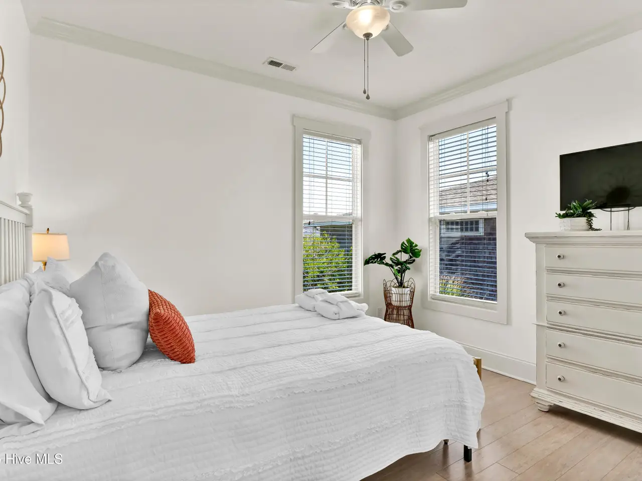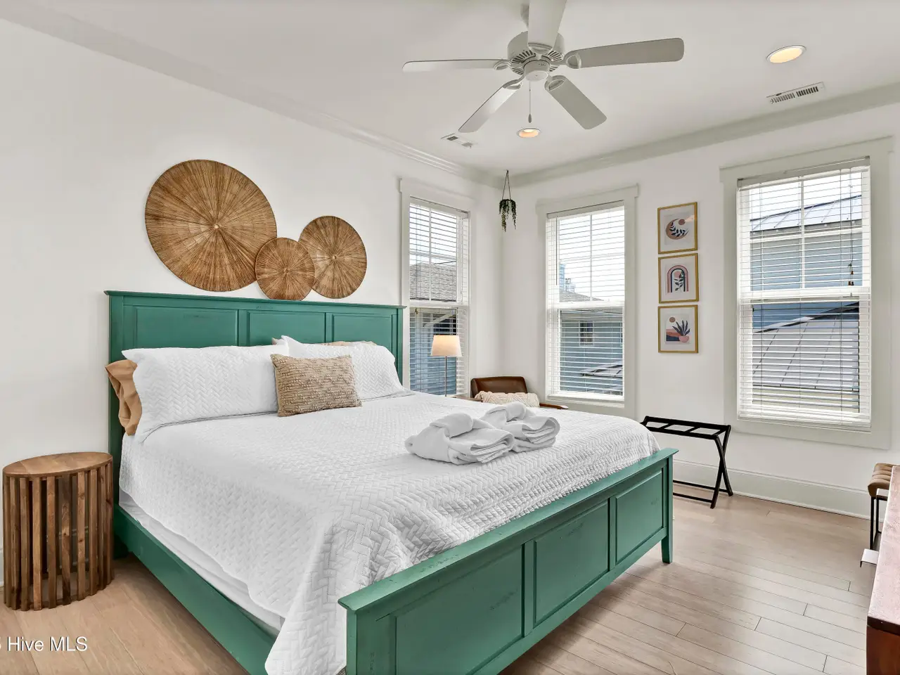 Gorgeous top floor condo one back from the ocean in the heart of WB! Just steps from the sand and surf! Spacious living space and kitchen are light and bright and decorated with modern coastal vibe. 3 bedroom, 2 bath, elevator and breezy balcony. Great ocean views from top floor deck overlooking beautiful beach and Johnny Mercer's Fishing Pier. Outdoor shower and large storage area behind garage. Walk to everything WB has to offer-shops, dining, coffee, ice cream, SUP and bike rentals, famous WB loop and more. Large garage, 2 driveway parking spots. Excellent rental history! Comes fully furnished.
