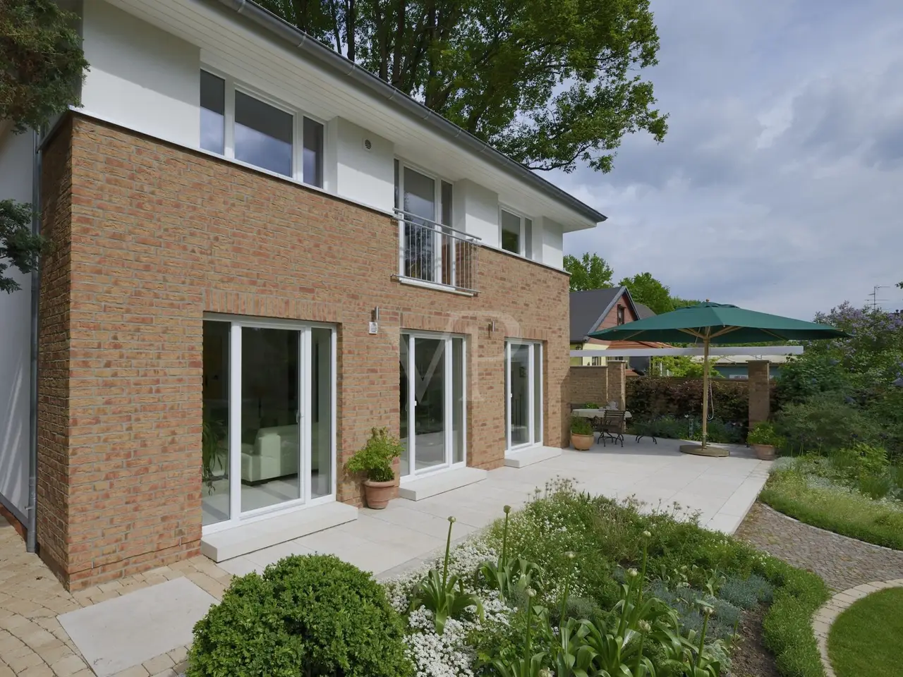 This modern urban villa combines timeless architecture with exclusive living comfort. On a living space of approx. 134 m², you can expect a well thought-out room concept that perfectly combines openness and comfort. The first floor impresses with large, floor-to-ceiling windows that flood the living and dining area with plenty of natural light. The centerpiece is the cosy fireplace, which creates a special atmosphere on chilly days. Thanks to the high-quality ventilation system, you can also enjoy a pleasant indoor climate at all times. The clearly structured architecture, the elegant brick façade and the classic hipped roof underline the prestigious character of the house. On the terrace and in the lovingly landscaped garden, you will find peace and relaxation in a green setting. Two bright bedrooms, a study or children's room and two modern bathrooms await you on the upper floor. This urban villa combines stylish living and modern furnishings - an ideal home for anyone who values quality and design.
