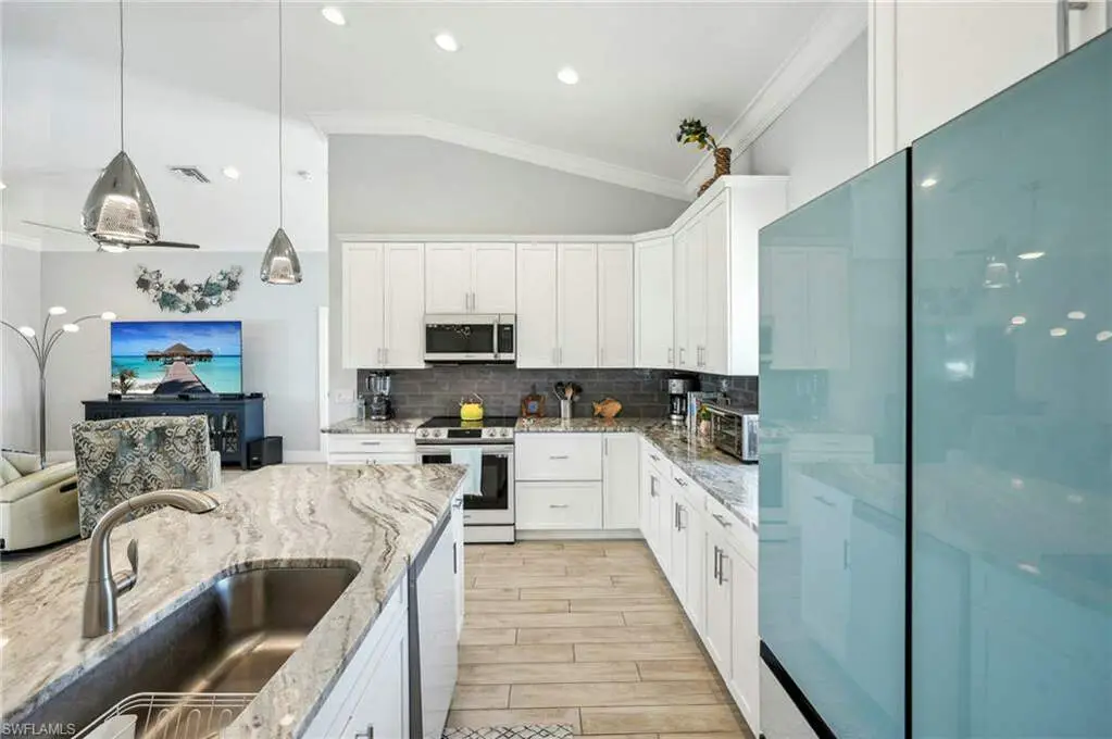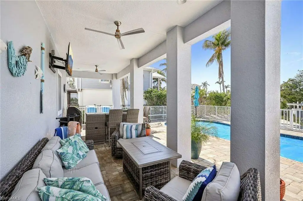 Welcome home to this gorgeous, elevated TURNKEY FURNISHED 3/2/2 direct gulf access pool home only steps to the white sands of the Gulf via your deeded Beach access. As you enter through the front doors you will be immediately wowed by the two-story entry way. The interior of this home features porcelain wood plank tile, soaring ceilings and an open floor plan. The beautiful white shaker kitchen with stainless appliances and stunning granite counter tops overlooks the main living area, great for entertaining. The ample sized master bedroom with walk in closet space also boasts an en-suite bath with dual sinks and a custom tiled walk-in shower. The second story enclosed balcony directly off the main living area is perfect for enjoying the serene canal views. In addition to the large 2 car garage on the main level there is an additional huge bonus area with so many possibilities. Step outside to your Florida oasis and enjoy relaxing by the pool, amazing fishing, or jump on your boat with your own private boat dock with a 14K lift to explore all SW Florida has to offer. Don't wait for new construction, you can move right into this 6-year young home! Huge price reduction!
