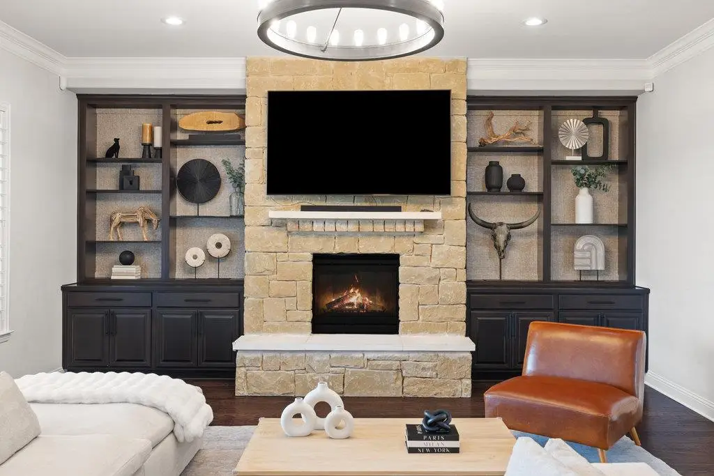 • Stone fireplace with TV mount