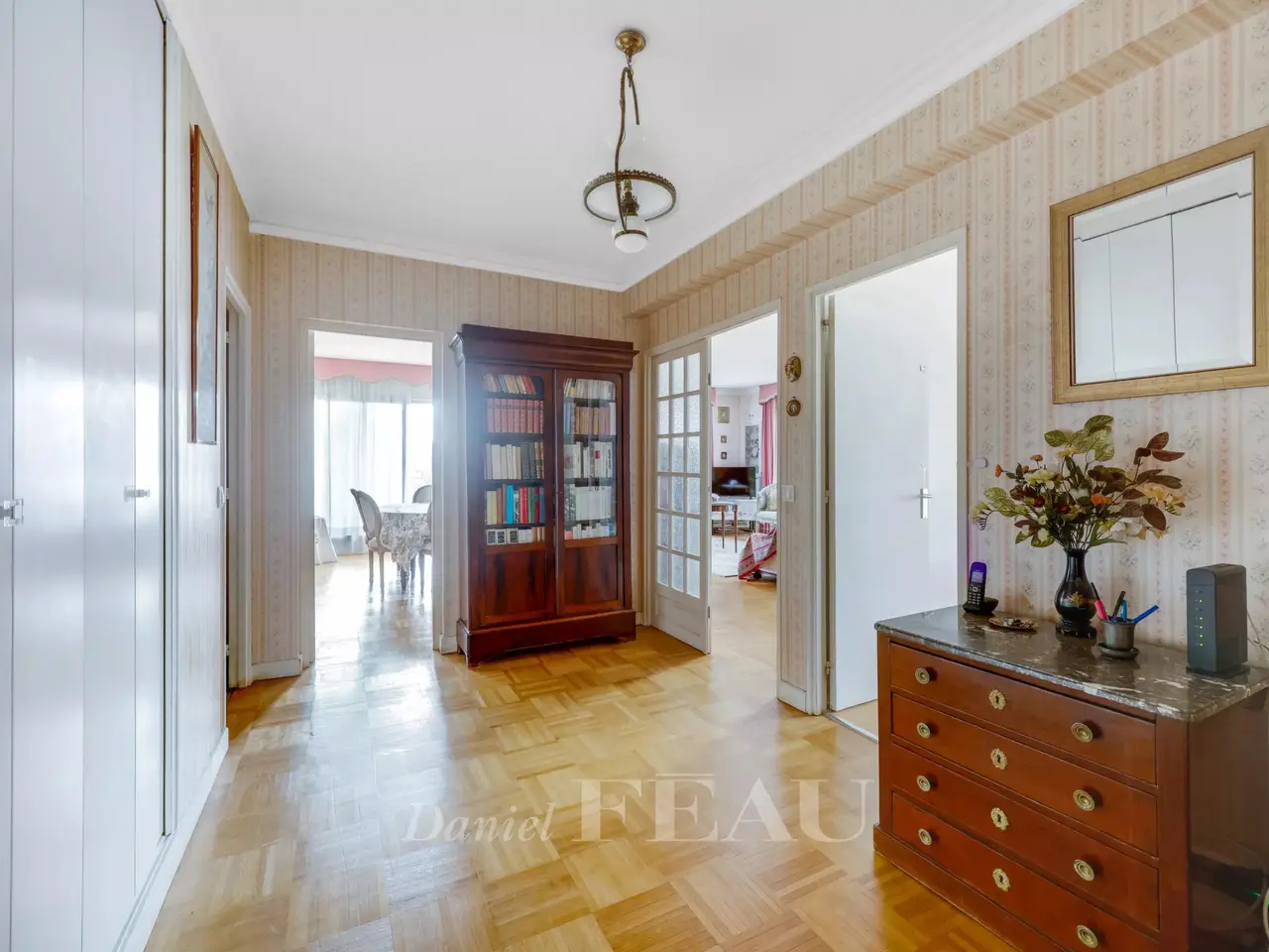 10 minutes from the RER, family apartment with an entrance, a double living room opening onto a large south facing balcony (18 m²). A dining kitchen and a scullery, a master bedroom, two bedrooms, a dressing room, a bathroom and a shower room. A second balcony accessible from the bedrooms, a box and a parking space outside and a cellar. Secure residence with elevator. Quiet and bright apartment, to refresh.