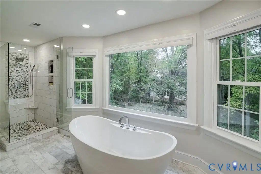 This Spectacular All Brick, 5 Bdrm, 4 1/2 bath Colonial offers elegance, thoughtful design and lifestyle adaptability with multiple flex spaces throughout. As you enter the large entry foyer with its vaulted ceiling, newly replaced energy-efficient Palladian window, and detailed dentil moldings, the home's design tone-one of timeless ease and sophistication-is immediately established and carried gracefully throughout. Elevated ceiling heights, intricate moldings, HDWD floors and expansive picture windows continue the open and refined feel in every room. Generously sized living room with French Door entry and beautiful wood floors. 1st floor BDRM with full bath is a great space for visiting guests. Centrally situated is the gorgeous and generously-sized kitchen- truly the center & heart of this home. Bathed in natural light with expansive picture windows, the bright and spacious Kitchen impresses with updated stainless steel GE appliances, a WOLF gas cooktop with hidden downdraft exhaust, custom white cabinetry, and modern LED recessed lighting. At its center, a stunning dual-sided FP, connecting the kitchen, breakfast nook, and dining room with warmth & charm. The 2nd floor offers 2 additional bdrms sharing a Jack & Jill half-bath, a 4th bedroom with hall-shared full bath, large Laundry Room with shelved storage closet, walk-up attic and Primary BDRM with luxuriously-updated en-suite bath. The finished walk out basement offers more bright and open spaces with lots of natural light great area for kids or a man cave with additional rec/family room with wet bar, full bath and direct garage access. The basement office space features a cozy gas FP and garage access. The oversized 2 car garage with wrap-around drive finishes this convenient & comfortable lower level. This home has been lovingly maintained and thoughtfully updated, offering a fluid, flexible layout that adapts effortlessly to your lifestyle in one of RVA's most desired neighborhoods! Award winning schools and access to interstates and shopping
