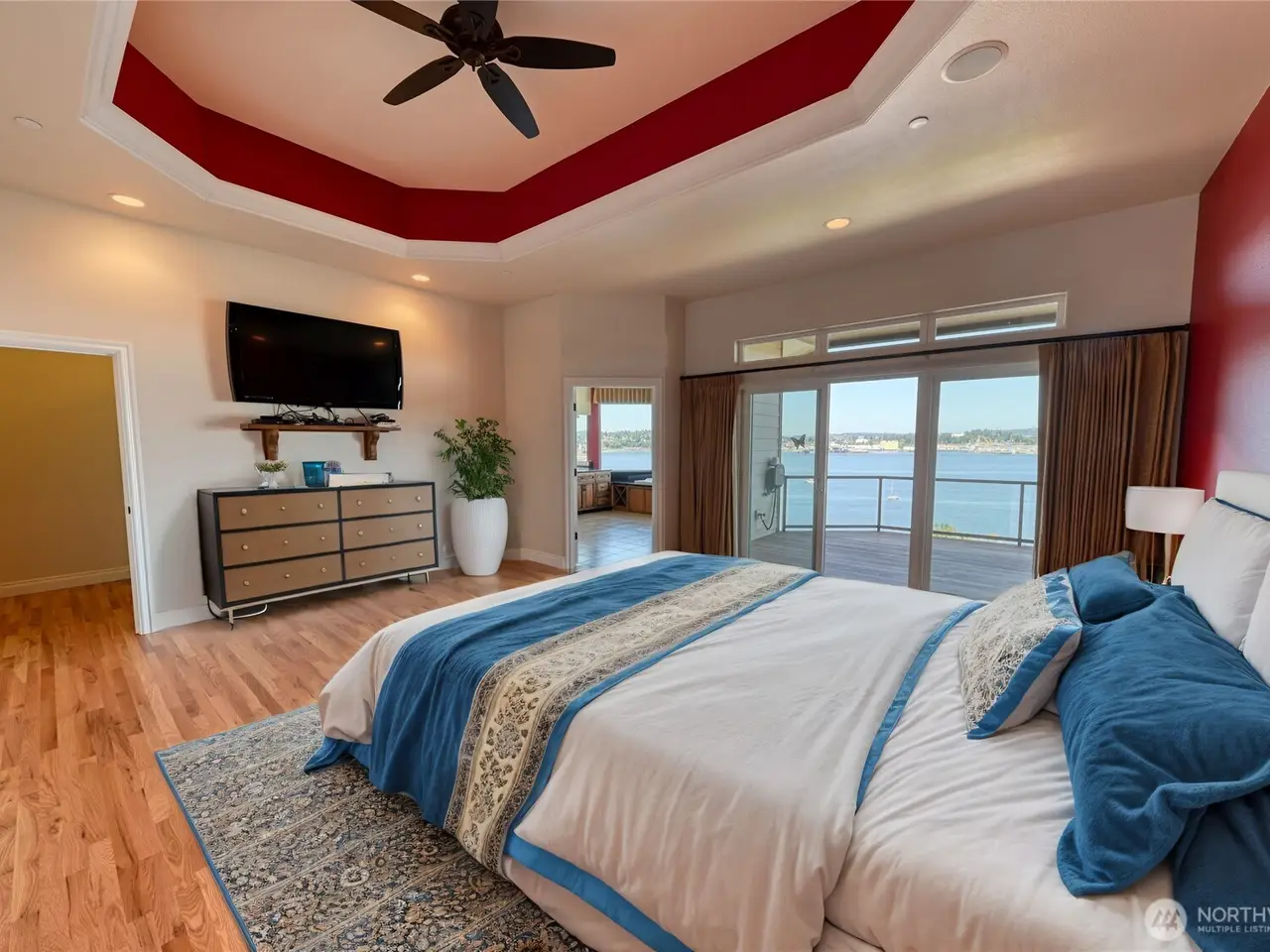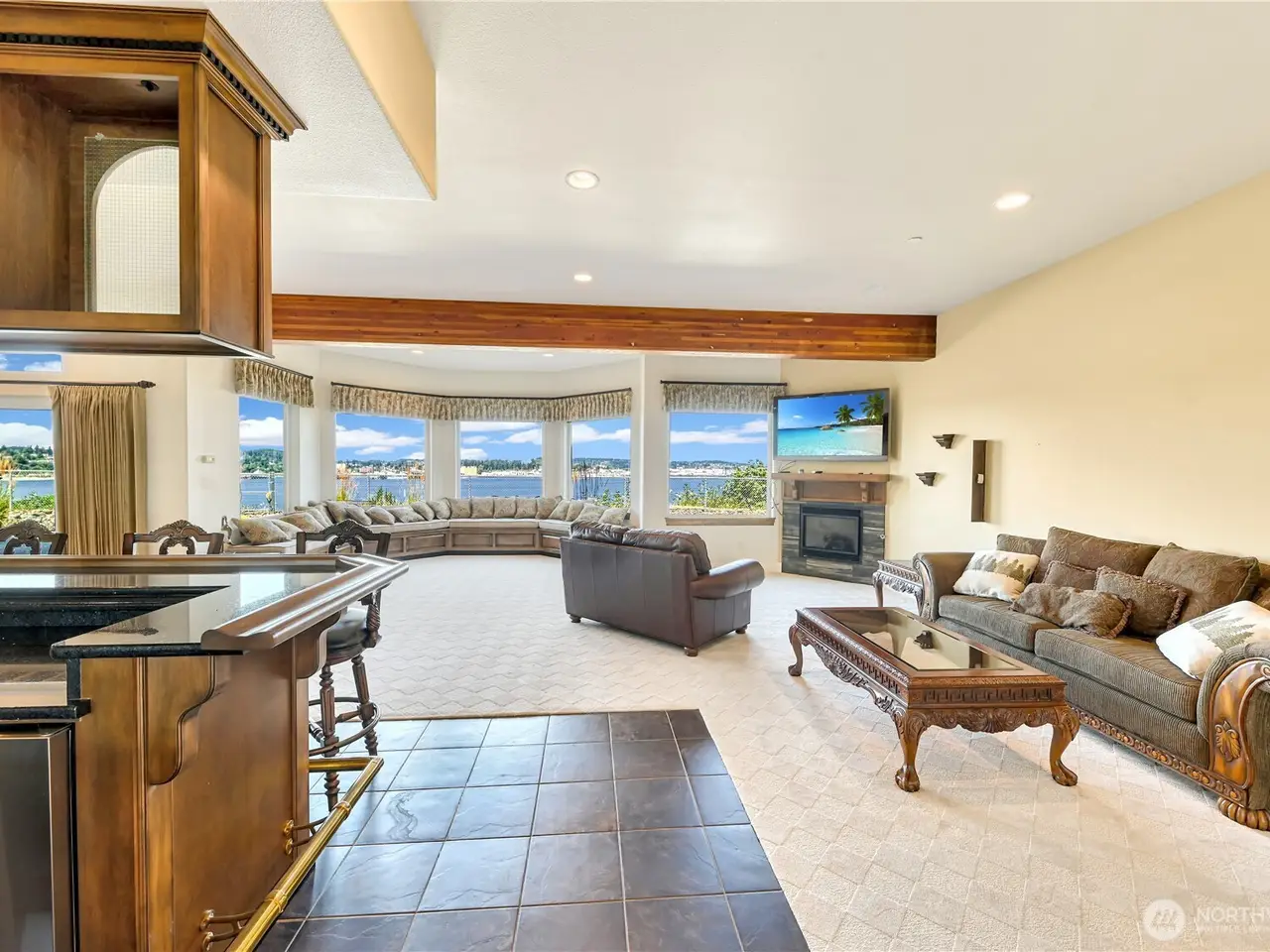 Experience unparalleled luxury in this beautiful view home overlooking Sinclair Inlet. Unobstructed panoramic views of the Puget Sound Naval Shipyard and breathtaking water views fill every room of this 5360sqft estate. Step inside the high ceiling grand entry and bast in the abundant natural lighting. Hand laid hardwood floors walk you throughout this exquisite home, with gourmet chef's kitchen, two master suites, and a leisure area with full service wet bar. This main-level-living home hosts 4 full bedrooms and 4 bathrooms. Additionally, the walkout lower-level leads to an expansive private patio. This home is perfectly designed for both sophisticated entertaining and serene relaxation. Experience this must view property today!