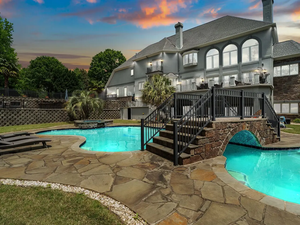 Welcome to this iconic Harlinsdale estate?an architectural masterpiece on a 1.2-ac double lot in a cul-de-sac. This exceptional 6 bd, 6 full & 3 half bth home boasts 11,428 sq ft of luxury. The main level stuns with heated marble floors, grand library with custom built-ins & striking dual-kitchen design featuring a full prep kitchen discreetly tucked off the open-concept main kitchen. A formal dining room, wet bar & main-level guest suite complete the space. Upstairs, the lavish primary suite includes a fireplace, private balcony, sitting area, wet bar & expansive walk-in closet with attached cedar-lined closet. 4 additional ensuite bedrooms, home gym & sauna round out the upper level. The finished lower level offers 11' ceilings, 3rd kitchen, full bar, home theater, bedroom suite & huge recreation area. Outside, enjoy a heated in-ground pool with heart-shaped spa, stone patio, gas firepit & multi-tiered backyard. A rare opportunity in one of Rock Hill's most prestigious neighborhoods.