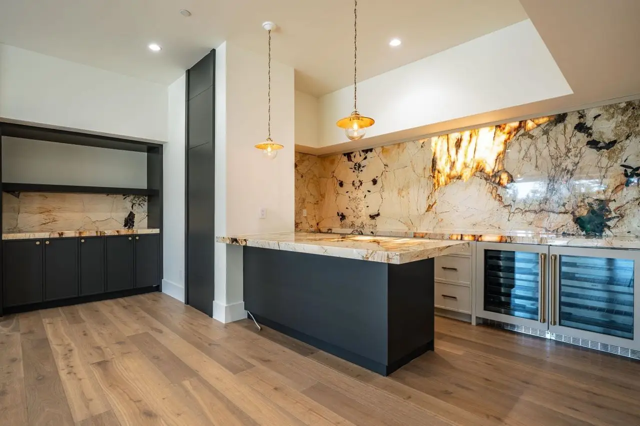 • Decked-out lower den/bar area
