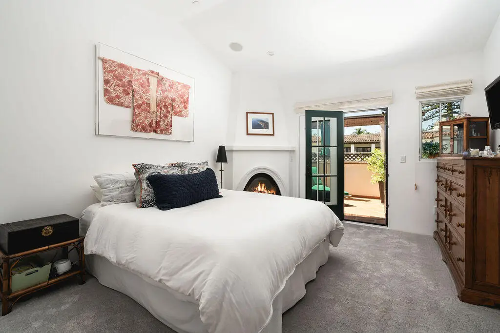 Located just steps from State Street and directly across from Paseo Nuevo Mall, this sophisticated 2-bedroom, 2.5-bath Paseo Chapala condominium offers upscale living in the heart of downtown Santa Barbara. The chef's kitchen boasts a generous island with bar seating, seamlessly flowing into the dining area and out to a spacious private patio. A dual-sided fireplace creates a warm ambiance between the dining and living rooms. Upstairs, both bedrooms are en-suite with their own private patios. The primary suite features a cozy fireplace, walk-in closet, dual vanities, a soaking tub, and a separate shower. Additional highlights include hardwood floors, plush carpeting, central A/C, private garage with interior access, and elevator service within the building. Turnkey and unbeatable location.