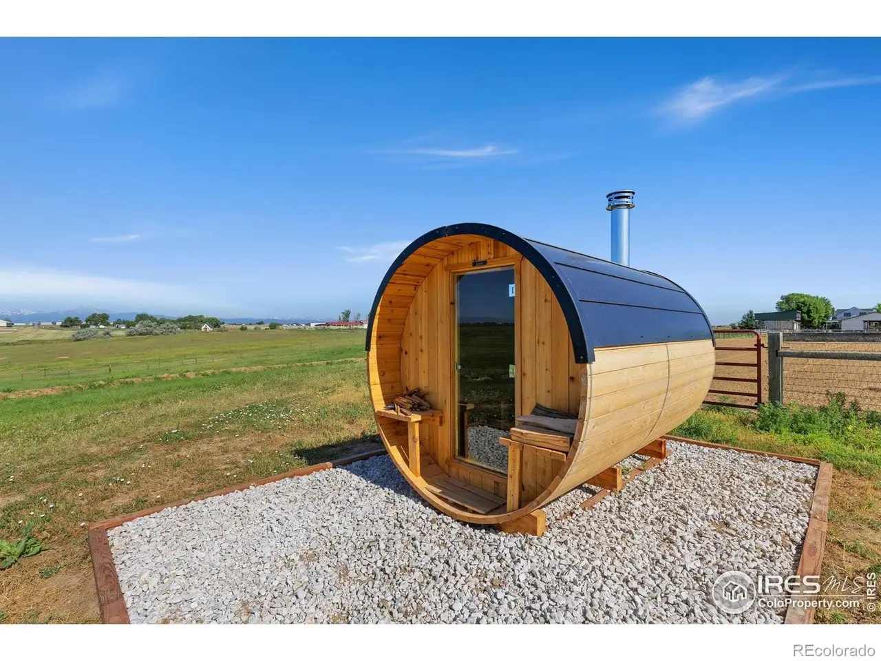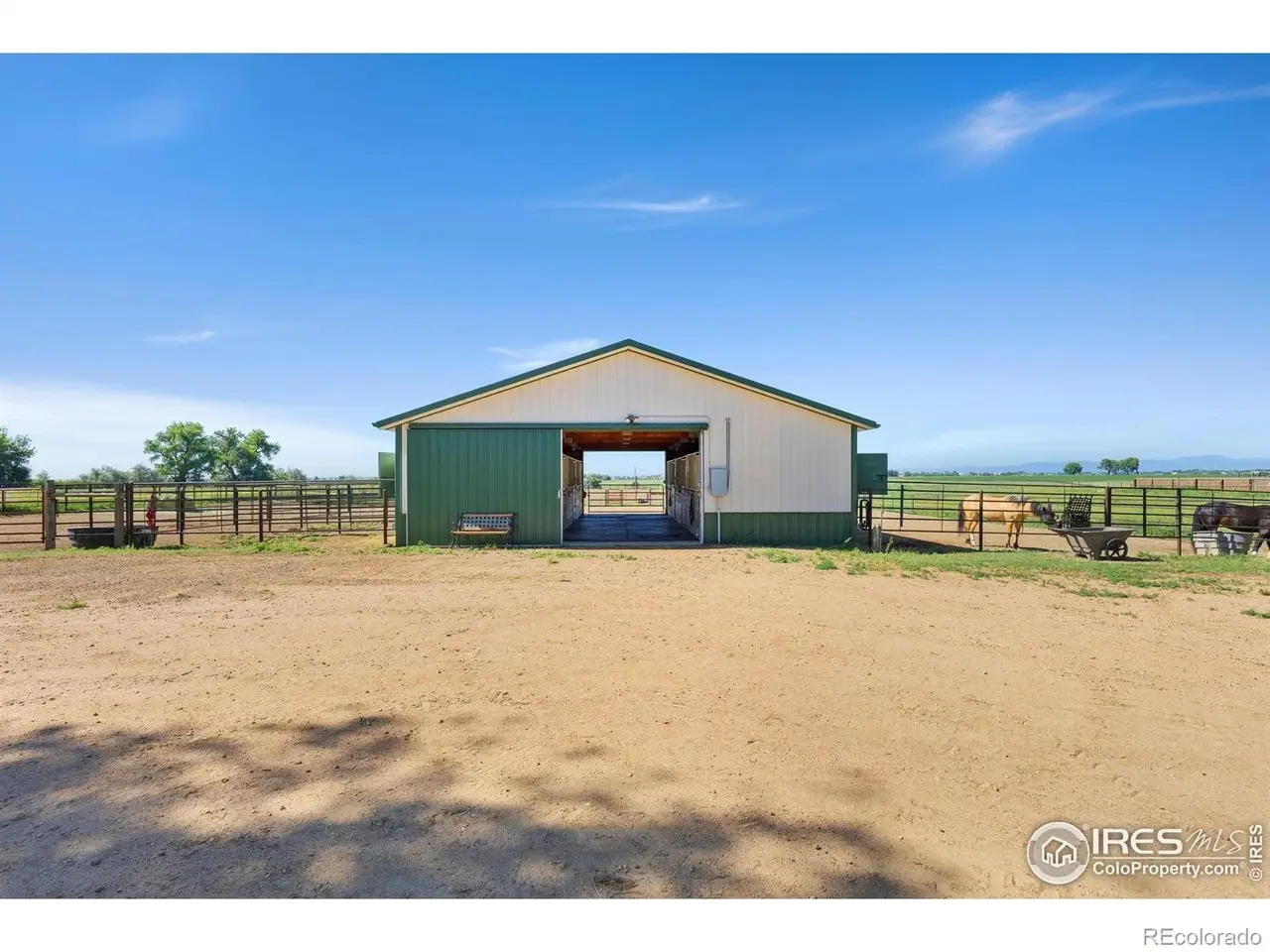 Set on 11-plus acres with sweeping views, this 1934 Craftsman-style 5BD/3BA farmhouse offers equestrian amenities, hay production, modern upgrades. Features include a 6-stall barn, roping arena, custom hay shed designed for stack retriever delivery, finished basement, wraparound porch, and new wood-burning sauna. Eligible for Mead schools and with easy access to Denver, Boulder, and Fort Collins, this one-of-a-kind property blends historic charm with country functionality. Originally built in Denver's Highlands in the 1930s, the home was relocated to its current setting, where the lower level was finished and the upper level added around 2000. The home includes a formal dining room, study, breakfast nook, multiple porches, and a lilac privacy wall. A gravel driveway leads to a central square surrounded by the home's mudroom entry, barn, 3-bay shop with attached tack room and equipment storage, hay storage, lawns, and chicken coop. The barn has three stalls on each side; left-side stalls feature outdoor runs that open to a dry lot turnout, while the right side opens to another dry lot. These can be combined by opening a center gate behind the barn. The large roping arena includes a cattle chute & jump-friendly footing. Hay-producing smooth brome pastures total 8+ acres and yield 200-300 bales/year. Hay storage holds over 1,500 bales. Pastures are fully fenced and include a large pasture that extends from County Road 36 to the smaller pasture at the back of the property, a one-acre rear pasture, and a 1/4 acre paddock on the left side of the driveway. Relax on the wraparound porch or enjoy the brand new Canadian-imported Nootka wood-fired sauna, located near a water spigot ideal for a future outdoor shower. Recent 2025 upgrades include refinished wood floors, new carpet, remodeled upper bath, radon mitigation system, fresh interior/exterior paint, and added fencing. Close to shopping, nurseries, restaurants, and the new Bella Ridge Golf Club.