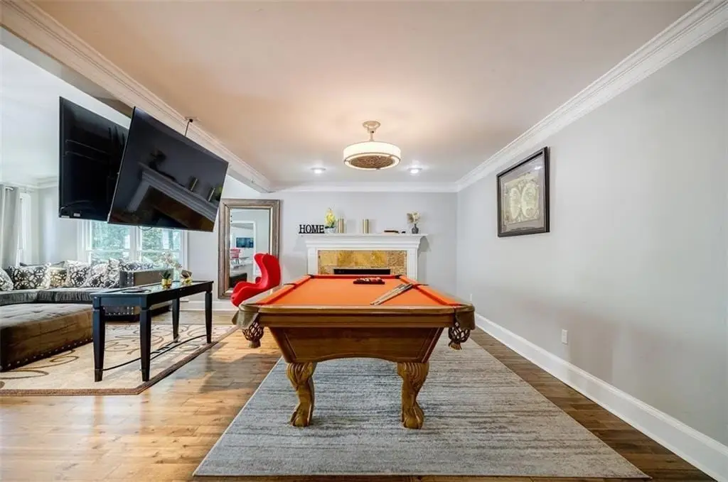 This beautiful home on a cul-de-sac with a guest house on 3.5 private wooded acres, has an in-ground swimming pool with waterfall, overlooking a private shared lake with boat dock. You can lounge on the many decks overlooking the lake, relax in the Hot Tub in the covered pavilion, walk through the landscaped grounds or enjoy time around the outdoor fire area. Outdoor kitchen joins half bath and changing room. The main is house has five bedrooms and three full baths and two half baths. Main house has hardwood floors. The updated kitchen opens to a large den and living room with views of the lake. The finished basement includes living room, game room, 1 bedroom, full bath and flex room. Upstairs is the master bedroom with joining office/den plus two bedrooms, one with coffee bar., and full bath.The guest house has 3 bedrooms 2 full baths and separate parking. Great for guest or rental income. Two storage units,. Lots of space for outdoor garden! Conveniently located near Lakepoint Sports Complex for the active athlete.