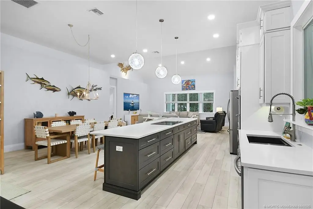 Step in??id? this ????? W???t-??tyle, custom-built c?ncr?te block home, complete with a full-length front porch and timeless curb appeal. This 3-bedroom, 2.5-bath home sits on a half-acre lot and is built with quality in mind, featuring soaring 12-foot ceilings, 8-foot doors, and luxury plank flooring throughout, spray foam insulation and impact glass. The chef's kitchen showcases white shaker cabinetry, an expansive island, coffee bar, and quartz countertops-perfect for both entertaining and everyday living. The primary suite is a true retreat with oversized walk-in closets, a sauna, and an impressive spa-style shower. Step outside to a screened-in porch with retractable screen overlooking a brand-new saltwater pool and spa. The outdoor living area includes a full summer kitchen with pizza oven, bar, outdoor shower, and lush professional landscaping-creating a serene, private oasis. With room to store your boat or RV, residents also enjoy access to a private day dock with fishing pier.