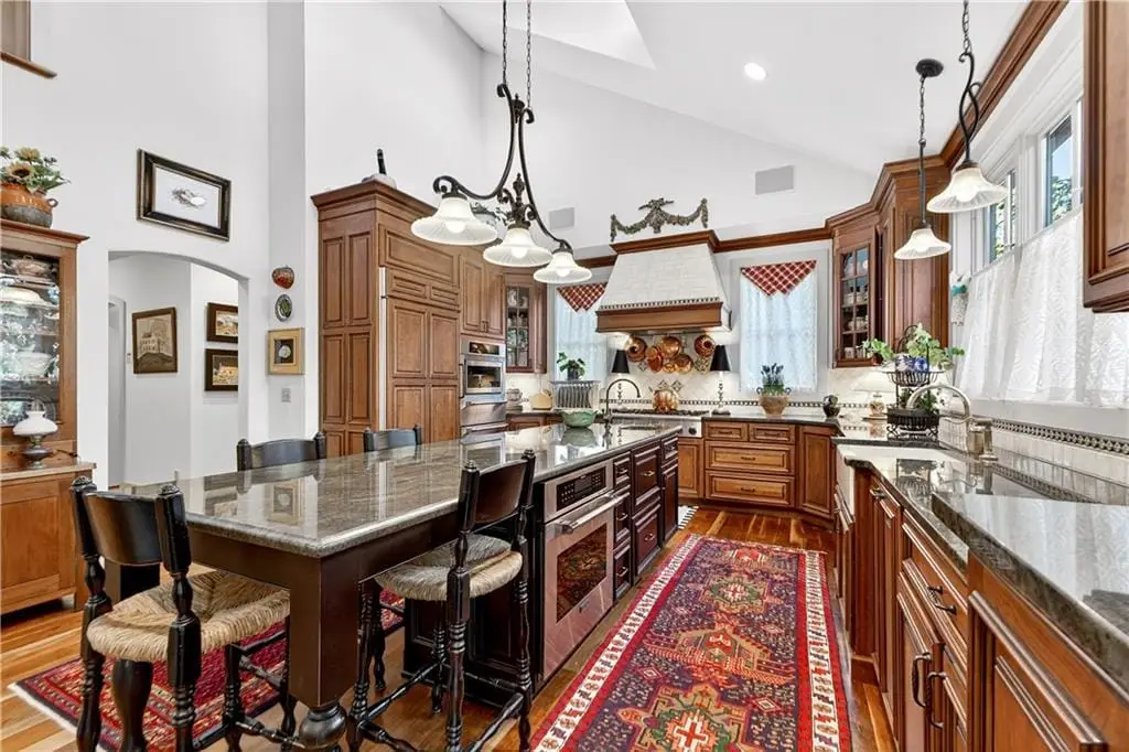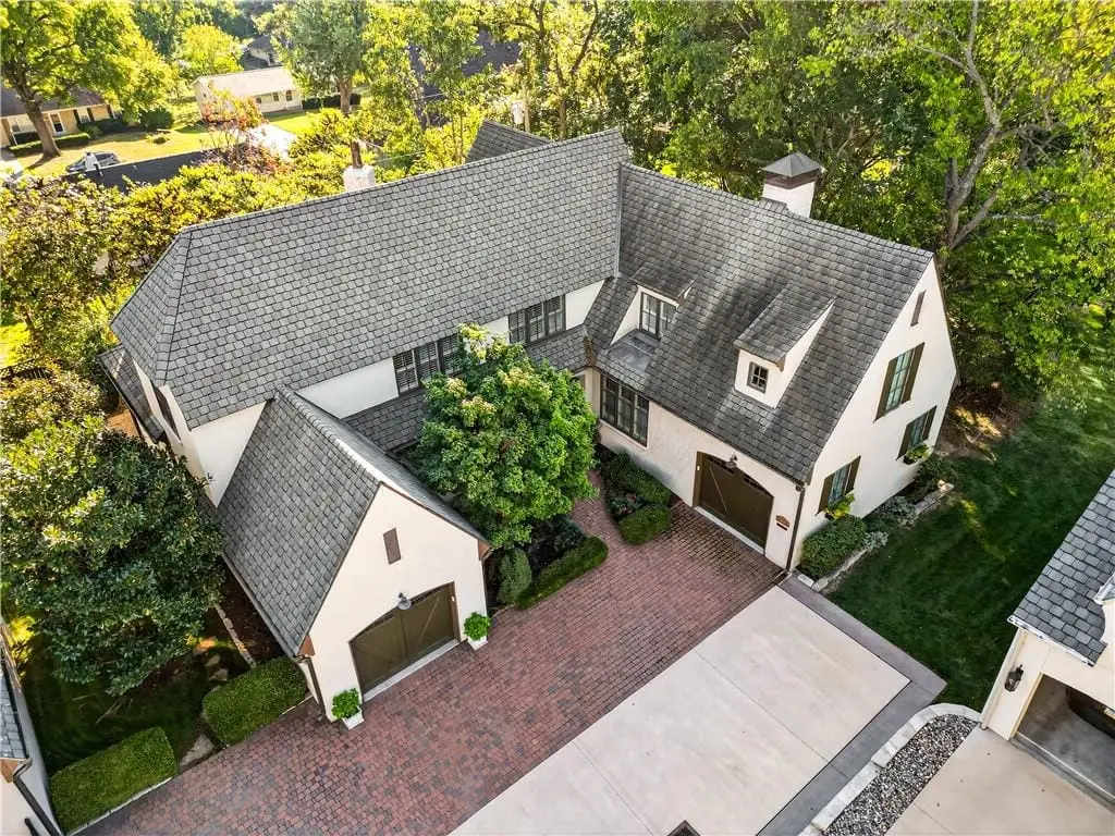 Welcome to this custom built one-owner 1.5 sty villa. Located in the highly sought after Crescent Court Community, this 4,030 sqft home combines timeless design, superior construction, and everyday convenience. The expansive entryway w/ soaring ceilings and sweeping staircase introduces the homes warmth and craftsmanship. Rich walnut floors, 1 solid wood doors, and custom millwork highlight the exceptional quality found throughout. The kitchen is a showpiece w/ vaulted ceilings, cherry cabinetry, granite countertops, and professional-grade Thermador appliances including a paneled refrigerator w/drawers, double ovens, and 6-burner gas range. The adjoining hearth room features a beautiful stone gas fireplace and convenient wet bar, creating the perfect gathering spot. The spacious living room showcases another gas fireplace w/a custom mantle and built-ins, enhanced by abundant natural light and walnut flooring. The main-level primary suite offers plantation shutters, ceiling fan, and expansive walk-in closet w/center island, plumbed for a stackable washer and dryer. The ensuite bath includes double vanities, jetted soaking tub, large walk-in tile shower, and private water closet. Upstairs, youll find four additional bedroomseach spacious with generous closets and beautifully upgraded bathrooms. Two bedrooms being large suites w/their own private bathrooms and the remaining two bedrooms being accommodated by a shared bathroom. Dont miss the additional finished space over the garage! Additional features include plantation shutters throughout, E-glass casement windows with true divided light, two HVAC systems, two dedicated office spaces that provide flexibility for work or hobbies, and a huge daylight lower level offering 2,200 sqft ready for finishing. Outside, enjoy the private brick patio framed by a stunning stone wall, lush landscaping, all-copper gutters, and stone chimney. A rare opportunity for quality, privacy, and location in the heart of Kansas City.