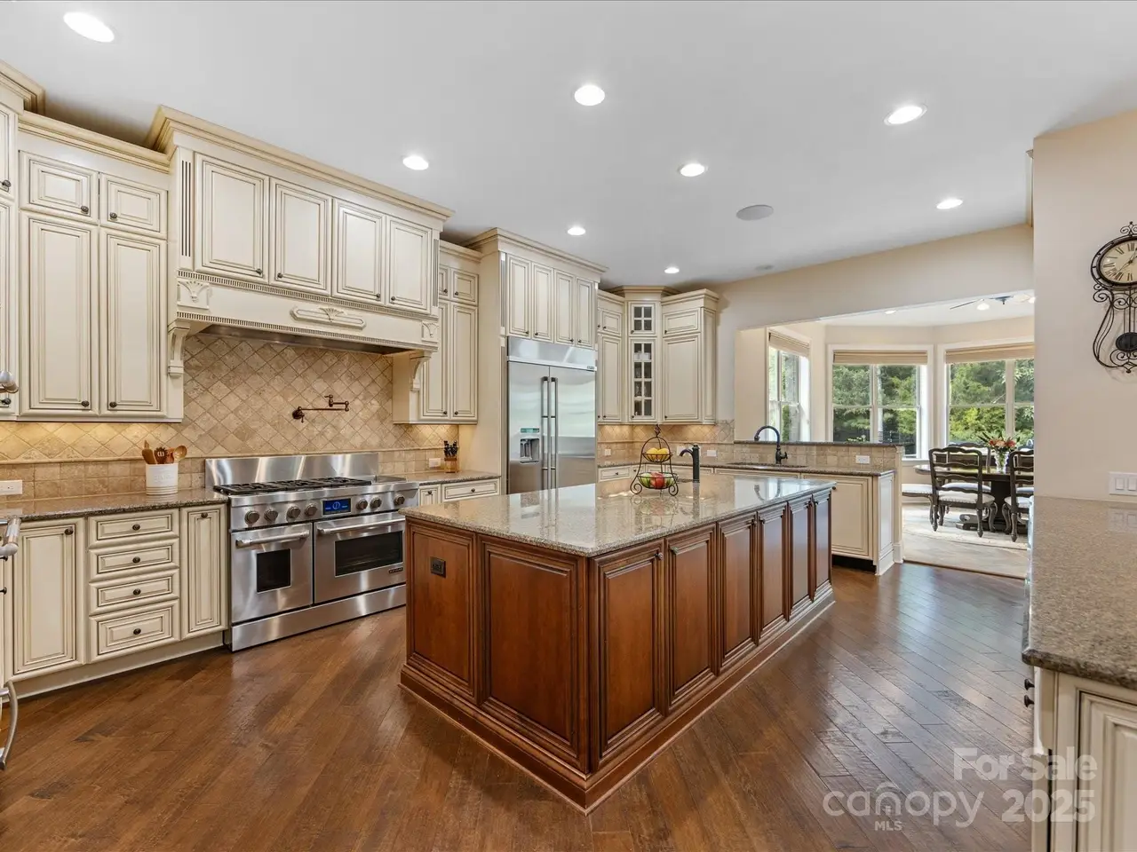 Welcome to this stunning 4 bedroom, 4 full bath, 2 half bath home custom built by Toll Brothers, located in the prestigious gated community of Enclave at Providence. Blending timeless elegance with modern functionality, this residence offers exceptional spaces for both everyday living and entertaining.Step inside the soaring two story foyer and enjoy 10-foot ceilings and gleaming hardwood floors throughout the main level. A large formal living room with a bay window fills with natural light, while the gracious formal dining room features oversized windows perfect for entertaining. A dedicated office/study with custom details provides a quiet place to work, while the inviting sunroom overlooks the private backyard and sparkling pool. The main floor also offers a private guest suite with its own en suite bath, ensuring comfort for overnight visitors.The heart of the home is the chefs kitchen, designed to impress with professional-grade stainless steel appliances, a gas range with pot filler, double ovens, custom cabinetry, granite counters, and a large island for prep and casual dining. This space flows seamlessly into the breakfast area and family room, creating the ideal hub for daily living.Upstairs, the massive primary suite is a true retreat. It features a separate sitting room with fireplace, expansive his-and-hers walk-in closets, a flex area perfect for a home gym or yoga space, and a spa-like primary bath with dual vanities, soaking tub, and walk-in shower. Two additional bedrooms on this level each include large en suite baths and walk-in closets, along with a flexible loft-style space that makes a perfect study nook or reading lounge. A spacious bonus room provides the perfect setup for movie nights or a game room.The third floor adds even more versatility with a private bedroom that doubles as an excellent flex spaceideal for crafts, hobbies, or a tucked-away retreat.With its combination of elegant living areas, private guest spaces, and thoughtful flex rooms, this home offers a floorplan designed for today’s lifestyle. All of this is located in the sought-after Enclave community, providing privacy, security, and a convenient location.