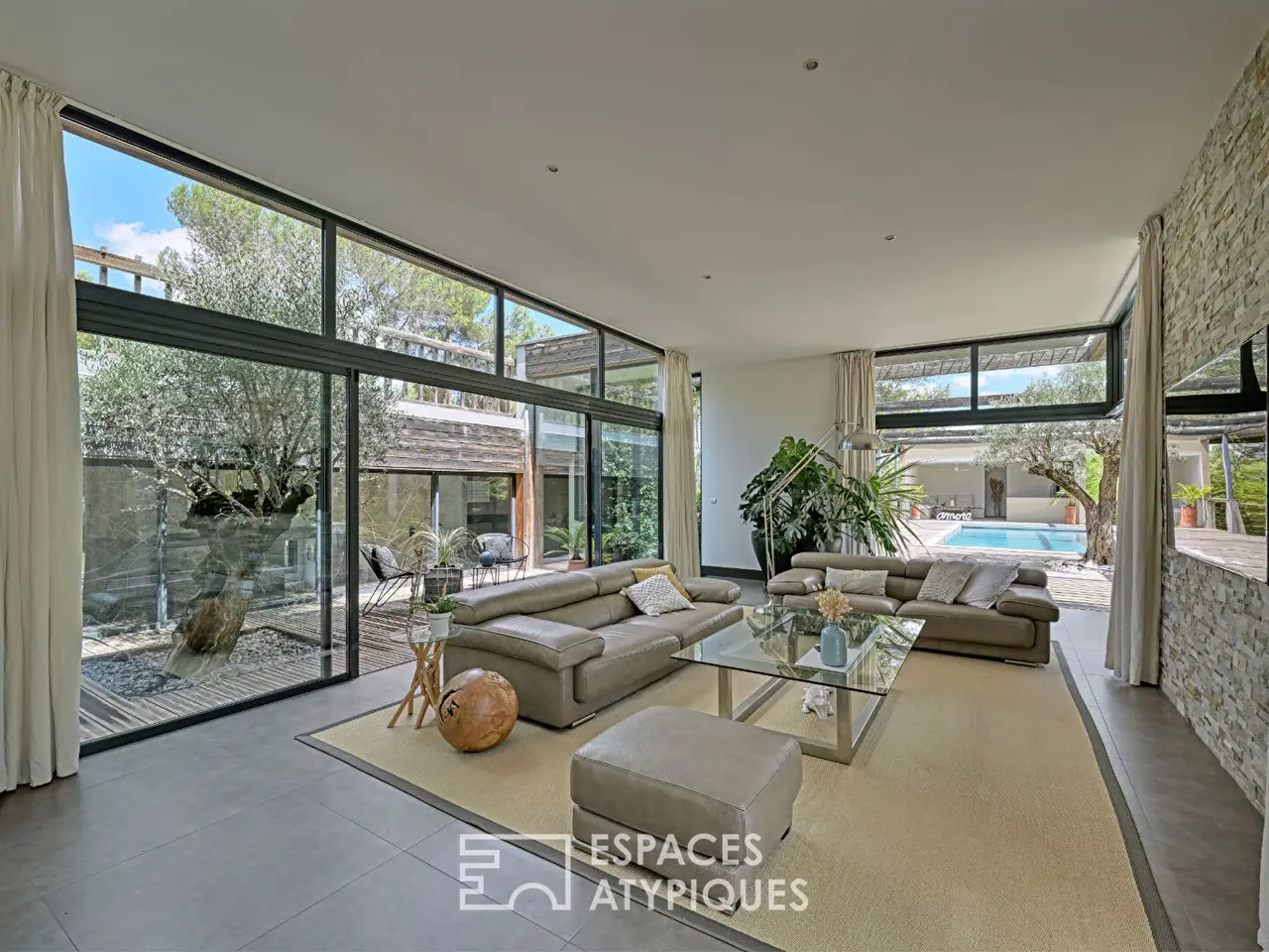 Built in Saint-Gely-du-Fesc, this contemporary house with 295 sqm of living space stands out for its bold architecture and generous volumes. Nestled on a vast, wooded plot, with no overlooked views, it offers a privileged living environment, enhanced by a beautifully landscaped garden.The outdoor spaces, ideal for relaxation, are complemented by a large central patio, creating perfect harmony between indoors and outdoors.Inside, the house unfolds around a resolutely modern concept. The living spaces, bathed in natural light thanks to large sliding bay windows, promote a fluid flow between the living room and the kitchen.The high ceilings accentuate this feeling of space and freedom. The property includes 5 bedrooms, an office, as well as a cinema room and a games room, thus offering varied possibilities between moments of working from home and conviviality with family or friends.The two shower rooms and the master bathroom are carefully designed, combining quality materials and functionality.A laundry room, a utility room, and three closed garages with workshop space complete the amenities, providing practical everyday features. Outside, the meticulously maintained garden invites serenity.Mature trees and green spaces create a peaceful and calm environment, perfect for relaxing. The central patio, the true heart of the house, allows you to enjoy sunny days while preserving the privacy of the living spaces.The sought-after Vautes neighborhood offers a pleasant living environment, close to schools and shops, making daily life easier for residents.This property, unique in its architecture, represents a real opportunity on the local real estate market.The combination of its generous interior spaces and its enchanting garden makes it an ideal place to live for those seeking an exceptional living environment.This elegant and functional luxury residence will appeal to lovers of high-end real estate, looking for a house where the design has been thought out for the comfort and well-being of its occupants.ENERGY CLASS: C - 113 / CLIMATE CLASS: A- 3Estimated average amount of annual energy expenditure for standard use, established from the energy prices for the year 2021, 2022 and 2023: between EUR2,500/year and EUR3,460/year.Information on the risks to which this property is exposed is available on the georisques website for the areas concerned.REF. 12088Additional information* 10 rooms* 5 bedrooms* 1 bathroom* 2 shower rooms* Outdoor space : 2350 SQM* Parking : 5 parking spaces* Property tax : 3 715 €Energy Performance CertificatePrimary energy consumptionc : 113 kWh/m2.yearHigh performance housing*A*B*113kWh/m2.year3*kg CO2/m2.yearC*D*E*F*GExtremely poor housing performance* Of which greenhouse gas emissionsa : 3 kg CO2/m2.yearLow CO2 emissions*3kg CO2/m2.yearA*B*C*D*E*F*GVery high CO2 emissionsEstimated average annual energy costs for standard use, indexed to specific years 2021, 2022, 2023 : between 2500 € and 3460 € Subscription IncludedAgency feesThe fees include VAT and are payable by the vendorMediatorMediation Franchise-Consommateurswww.mediation-franchise.com29 Boulevard de Courcelles 75008 ParisInformation on the risks to which this property is exposed is available on the Geohazards website : www.georisques.gouv.fr