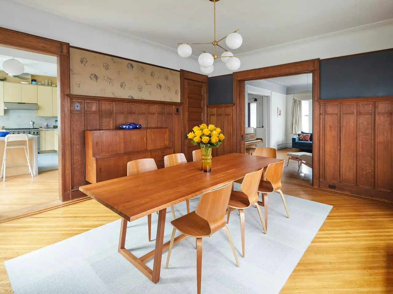 Discover the perfect blend of historic charm and thoughtful renovation in this rare 7-bedroom, three full bath, and quarter-bath Victorian-style detached home in the heart of Ditmas Park. Set on a peaceful, tree-lined block, this generously sized property sits on a 50" x 100" lot, with the home itself measuring 32" x 36', offering incredible space both inside and out. A gracious front porch welcomes you in. Inside, timeless architectural features like wood paneling, oversized pocket doors, and original wainscoting are beautifully preserved, adding warmth and texture throughout the home. The true centerpiece is the renovated chef's kitchen, thoughtfully extended to include a striking wall of atrium windows that allow in gentle natural light and offer views of the enormous backyard - a wonderful oasis for entertaining, play, or gardening. The kitchen features high-end appliances, custom cabinetry, and durable concrete slab floors that continue through the main level. This home offers seven bedrooms, providing flexibility for sleeping quarters, guest accommodations, or dedicated work-from-home spaces. There are three full bathrooms thoughtfully placed throughout the house, along with a convenient quarter bath. The fully finished, oversized basement is ready to be tailored to your needs, whether you envision a recreation area, studio, home office, or additional storage space. A spacious laundry room is equipped with a washer and dryer, and two dedicated parking spaces complete the picture of practicality and comfort. The home is thoughtfully designed to offer both light-filled gathering spaces and tranquil areas for rest and retreat. The atrium-enhanced kitchen and main living areas bask in natural light throughout the day. Solidly built with strong bones and modernized with care, this home is move-in ready and offers unmatched space, comfort, and versatility- all in one of Brooklyn's most beloved neighborhoods.