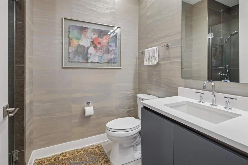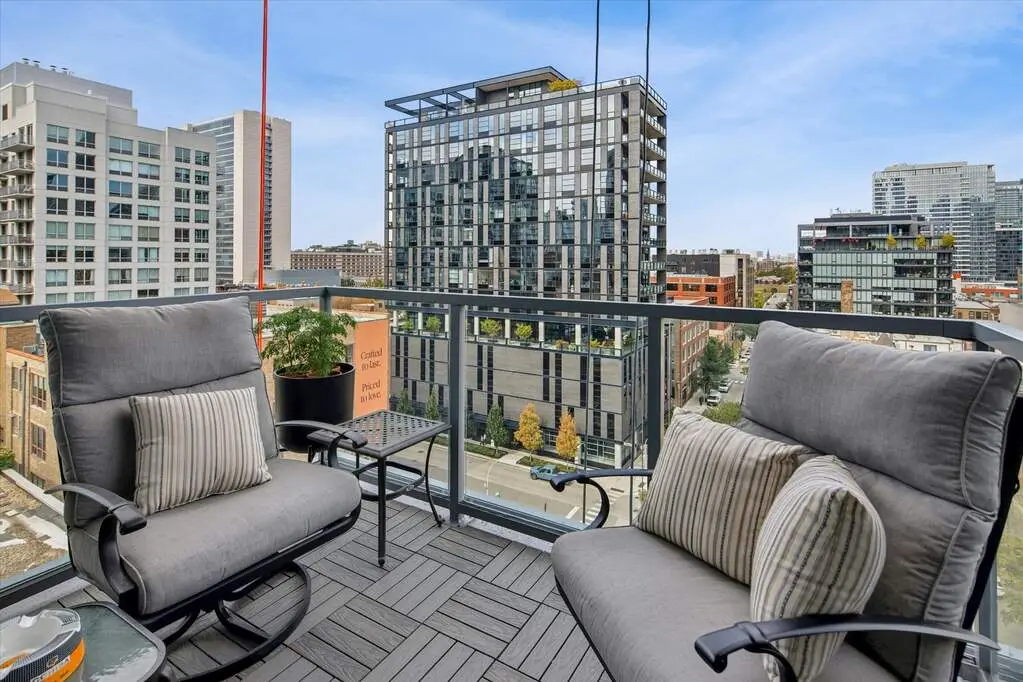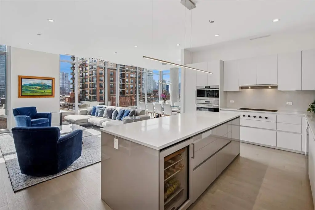 TWO GARAGE PARKING SPACES INCLUDED! Highest floor available since building's completion in 2019! This spectacular River North home is situated in one of Chicago's most dynamic neighborhoods. Featuring an expansive layout with two private balconies, this residence features floor-to-ceiling, wall to wall windows offering unobstructed urban views and abundant natural light. Enjoy ten-foot ceilings, hardwood floors, and custom built-ins throughout. The chef-inspired, open kitchen is outfitted with sleek Italian cabinetry, marble countertops, and top-of-the-line Wolf & Bosch appliances-perfect for both everyday living and entertaining. An impressive primary suite includes two walk-in closets, a private terrace, and a spa-caliber bath for the ultimate retreat. Two additional generously sized bedrooms-one with an ensuite bath-offer versatility and comfort. A full laundry room and exceptional storage complete this exceptional home.