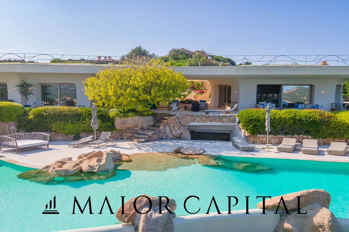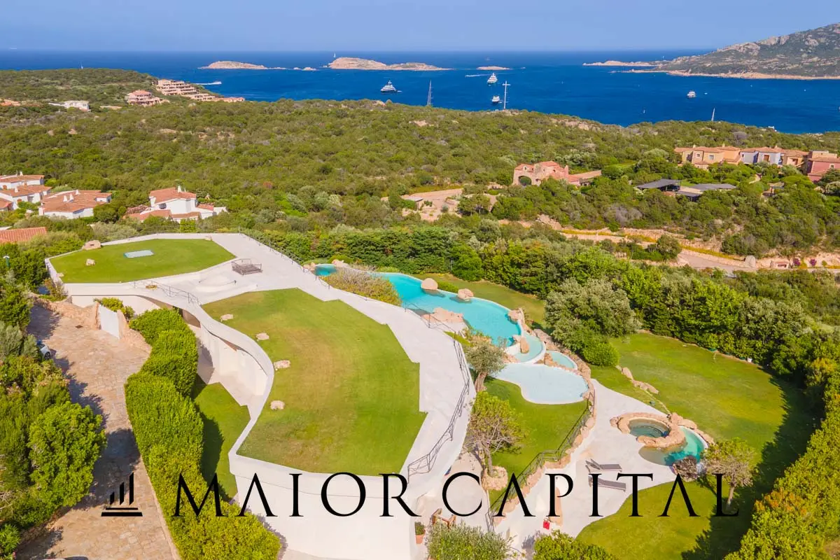Dominantly positioned with a view of the crystal-clear sea of the beautiful Sardinia, we offer for sale a one-of-a-kind villa. Large spaces, modern design, and luxury blend perfectly with the verdant nature of the island, leaving anyone who sees this dream villa speechless. A well-kept garden, enriched with several scenic pools, surrounds the property, creating the ideal environment to relax, get carried away by the atmosphere of the Costa Smeralda, and abandon all negative thoughts and daily stress. The large outdoor area and large internal sizes seem specifically studied to host friends, entertain them, and at the same time to offer them private spaces to live in total privacy. Inside, the villa offers private rooms equipped with every comfort, wellness area, massage room, gym, and all kinds of luxury. In the garden, you can enjoy the tennis court, the whirlpool pools and solarium, and various equipped relaxation areas. High-quality finishes, design furniture, sometimes made by local craftsmen, catch the attention of those who visit and make each room pleasant to look at, studied in the smallest detail. The ideal location, very convenient for travel to the center of the renowned Porto Cervo and to every beach on the coast, makes the property perfect for spending unforgettable moments in northern Sardinia. Spread over several levels, it is composed as follows: Wide and equipped verandas Large and bright open-space living area with sea view and pool view Elegant dining room Equipped and professional kitchen Master suite with visible jacuzzi and private bathroom, complete with walk-in closet and relaxation area Five double bedrooms with en suite bathroom, walk-in closet and private relaxation area Three guests bathrooms Area for service staff with four rooms and private bathrooms Laundry Cellar Features: High-quality furniture Private garden of about 3000 sqm Fireplace Air conditioning in every room Spa with Turkish bath, sauna, jacuzzi Massage room Cinema room with home theatre system Gym Bar Outdoor pool with whirlpool and heated water Solarium Tennis court Covered parking area Why buy it? #1 High-quality property #2 Exclusive context #3 Unique solution of its kind #4 Panoramic sea view #5 Scenic pools #6 Large internal and external spaces #7 Just a few minutes from the center of Porto Cervo #8 30 minutes from Olbia Costa Smeralda™ port and airport Maior Capital is the Real Estate Group of reference for the purchase and sale of property in Sardinia, offering the widest selection of luxury properties, charming homes and nature in a single collection. Our team of real estate experts offers a tailor-made and impeccable service, thanks to their deep knowledge of the Sardinian territory and proven professionalism. As an exclusive member for Sardinia of important global networks such as Luxury Portfolio International, Leading Real Estate and Italian Network Realty, we guarantee a high-level brokerage experience and maximum satisfaction for every client.