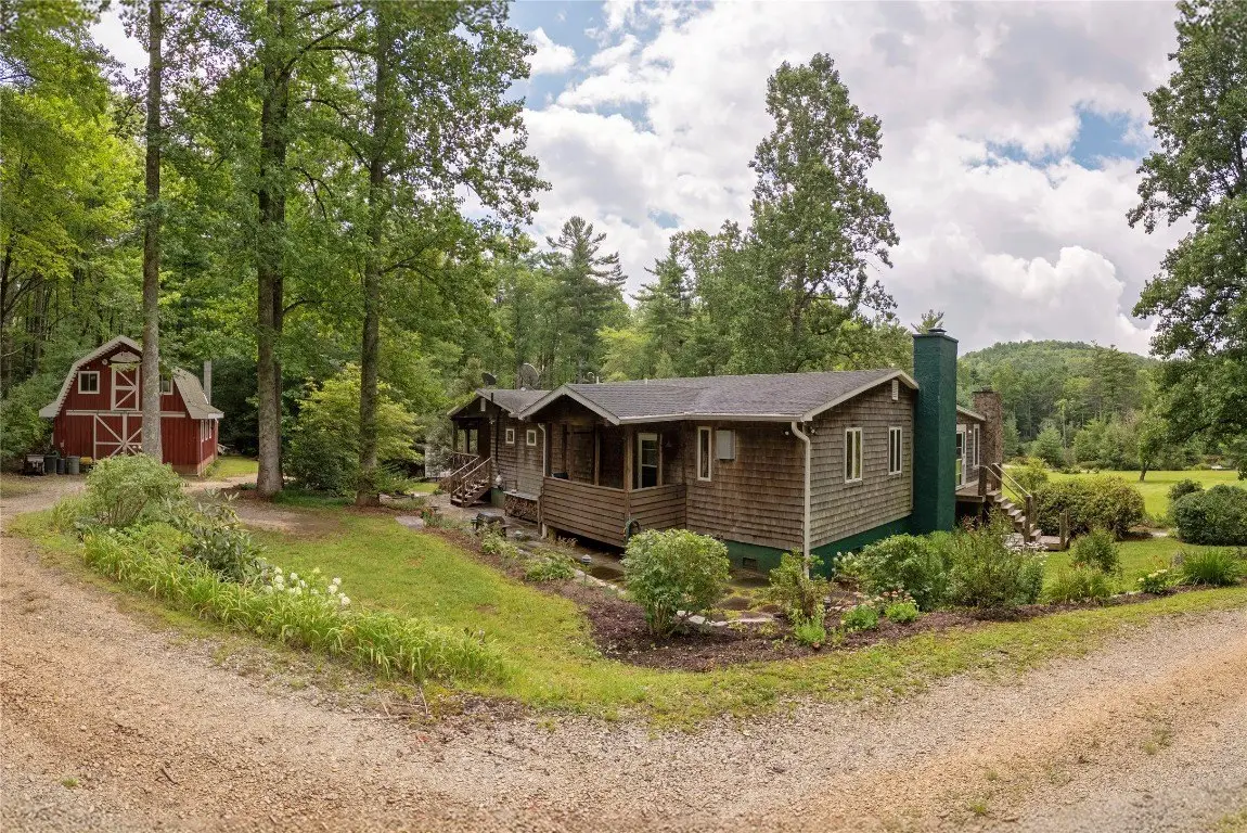 Prime for horses, farming, or creating your private mountain retreat, enjoy 37+ acres at over 3,100 feet. This rare Sapphire, NC estate combines privacy, versatility, and breathtaking natural beauty. Bordered by the Nantahala National Forest, the property includes three unrestricted parcels with residential and agricultural zoning, gently rolling pasture, mature forest, a pond, abundant wildlife, and five wells already in place. A short hike or ride on horseback leads to the scenic Thompson River, making it ideal for equestrian enthusiasts or those seeking a compound or investment opportunity. The residence offers a flexible layout with two bedrooms, three baths, and an attached in-law suite for additional occupants or guests. The main living area features an open-concept great room with a wood-burning fireplace, sunroom, separate dining room, and eat-in kitchen, along with a bedroom and two full baths. The attached suite includes its own kitchen, one bedroom, one full bath, a spacious office, and a deck overlooking the pasture and pond. Throughout the home, generous closet space and abundant storage keep everything organized. Modern touches include a professional gas stove, underground utilities, and a 3-zone HVAC system for year-round comfort. Beneath the home, two garage bays provide sheltered parking, while the expansive lower-level space—accessed by two full-view garage doors—functions as ATV storage, a workshop, and a potting shed, or can serve as a gathering area. Additional structures include a heated, detached 2-car garage and a barn/workshop to support hobby farming or horses. Located just minutes from Sapphire’s dining, golf, and resort amenities, close to Gorges State Park, and within a short drive of Highlands, Cashiers, or Brevard. Travel times are also convenient: just over an hour to Greenville, SC, and less than three hours to Atlanta. This property delivers rare land, location, and elevation for a dream residence, working farm, multi-use retreat, or investment holding.