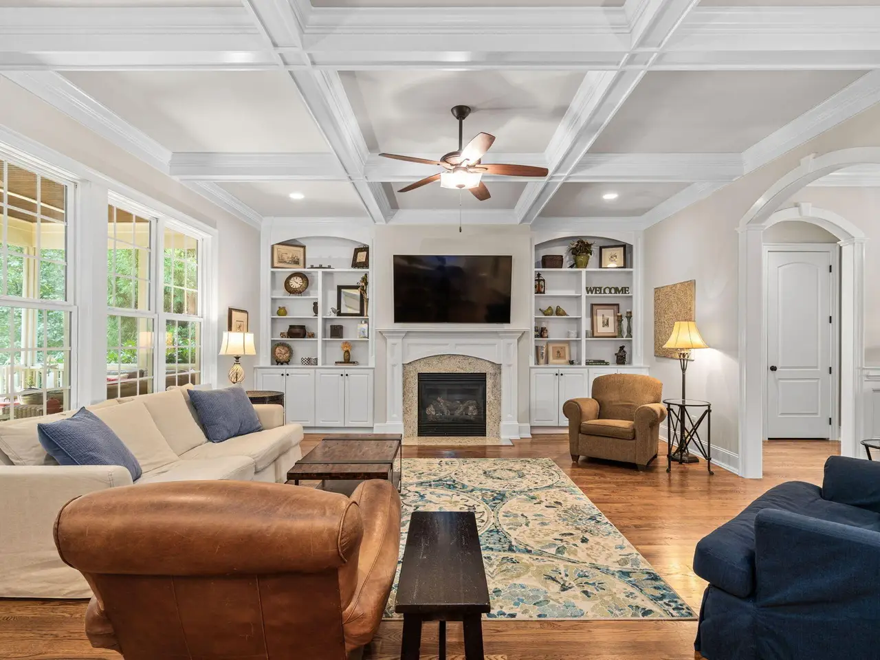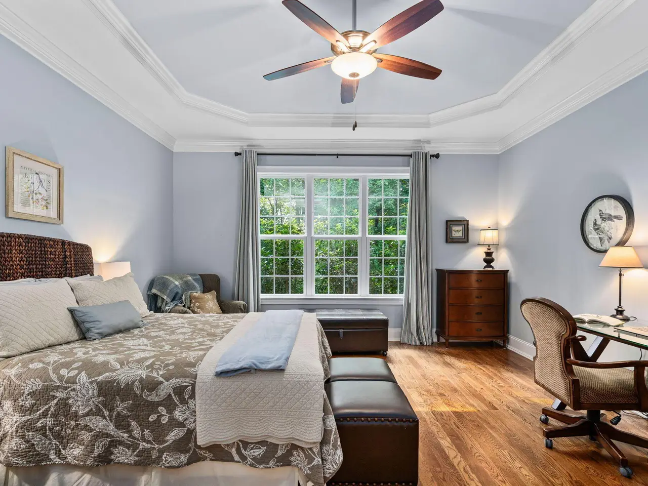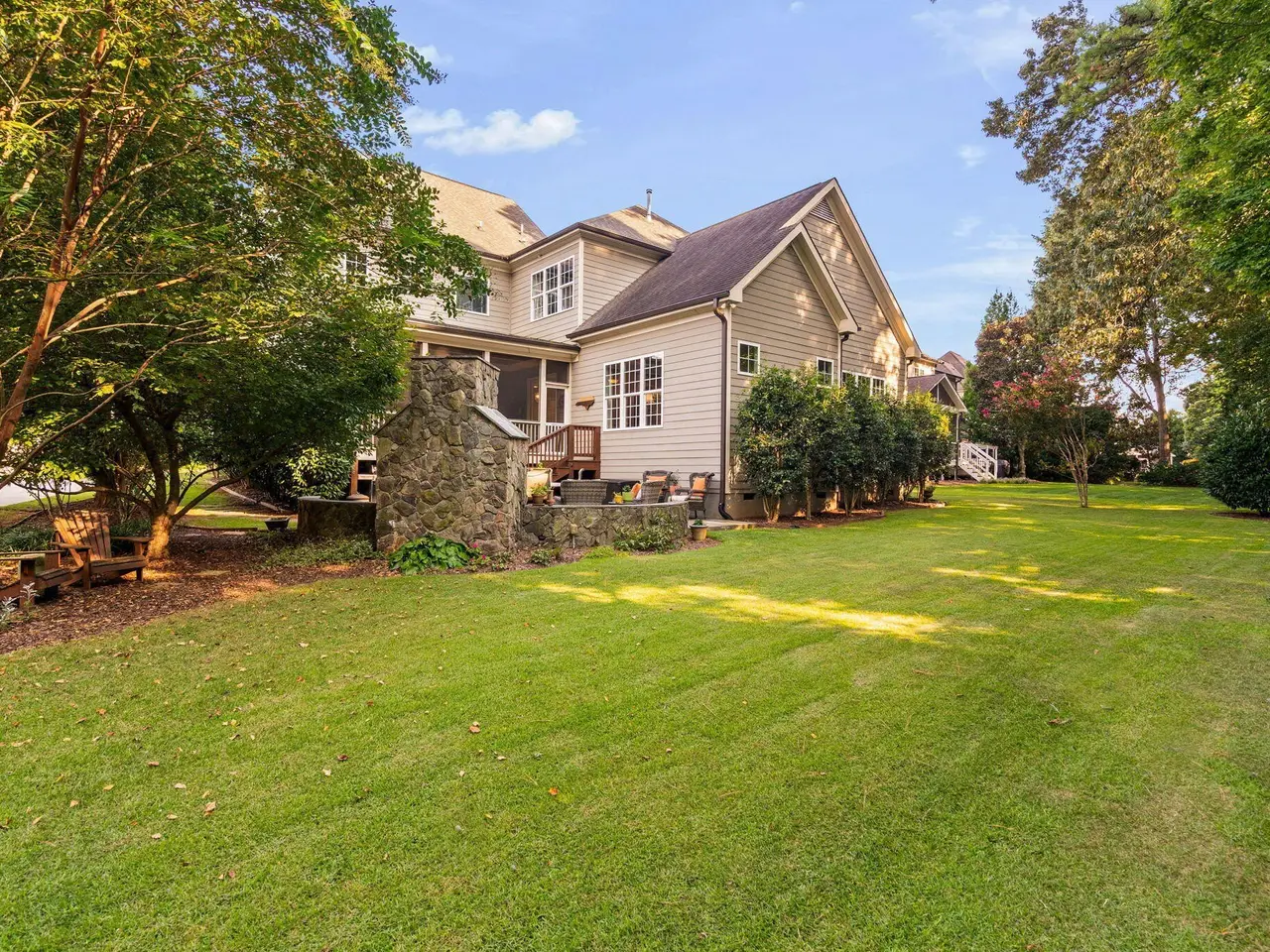 Knock out your wish list with this trophy property. Multi-generational living with TWO primary bedrooms & TWO laundry rooms. Great curb appeal - a gorgeous exterior that is truly swoon worthy. The interior is drenched in vogue finishes. This custom property lives large & encompasses 5 spacious bedrooms, 5 baths, 3 fireplaces, Chef's kitchen, family room, gorgeous hearth room, formal dining room, drop zone, & a bonus room - plenty of room for entertaining, sleep, study, storage and stellar versatility. You are greeted with a double door entry & a grand foyer, gleaming hardwoods, superior mill work & finishes, arched doorways & lofty ceilings that lend an open and airy feel throughout. Coveted primary on main level (one of two): Oversized with a tray ceiling, walk in closet, hardwoods & private views of the lush backyard. The heart of this home will be the Chef's kitchen that is well appointed with a gas cooktop, two sinks, beautiful pendants, an oversized island, under cabinet lighting, a Costco worthy walk-in pantry - this area becomes your gathering place. Hearth room is flanked with a stacked stone gas fireplace, built-ins, hardwoods and a soaring ceiling. 2nd primary BR has two walk-in closets, a luxe spa with a standalone soaking tub, walk-in shower w/custom tile and dual vanities. Add 3 more bedrooms. a bonus room & another wash/dry zone. This home is wrapped in windows that gives such a sense of tranquility. Coffee in the morning, tea in the afternoon or cocktails in the evening - you will never want to leave your screened in porch and/or stacked stone outdoor fireplace. Backyard entertaining area is super-sized with lush greenery, diverse plantings, stone patio & charming accents that elevate the space into a captivating and relaxing retreat. Massive walk-in floored storage areas. Double bay extended garage with room for a workshop or gym. Third floor can be finished. Enviable lifestyle with a community pool / play area and a location that is close to everything you may need or want. Welcome Home!