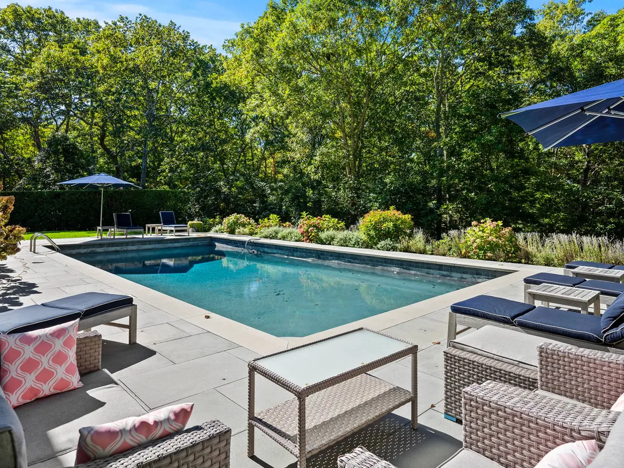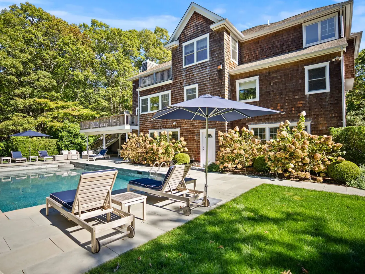 This Southampton secluded and amenity-filled property features an expansive approximately 6,000 square feet of immaculate interior living space across three stories and multiple indoor and outdoor entertaining areas. This Southampton property has it all, from sprawling lush grounds to a luxurious, feature-rich home with a 3.5-car garage. All six bedrooms and 5.5 bathrooms are well-appointed and drenched in natural light. The great room showcases a living room with a double-height, floor-to-ceiling stacked stone fireplace flanked by walls of windows, and a professionally equipped kitchen with a breakfast area. Formal dining, den, powder room, laundry room, and a spacious principal bedroom complete this first floor. Both the kitchen and living room offer convenient access to outdoor lounging, a brand-large new deck, and a BBQ area. The second floor features a second principal bedroom with a balcony, three additional bedrooms, and two baths. The walkout finished approximately 1,279 square foot lower level includes a living room, bedroom, full bath, and wet bar, and access to the bluestone terrace, pool area, outdoor shower, and outdoor lounging spaces. Supremely comfortable, convenient, and luxe in a tranquil neighborhood. The Hamptons hideaway is central to both Southampton and Sag Harbor Villages, near ocean beaches, and perfectly secluded on a sprawling, manicured approximately two-acre lot with room for tennis.
