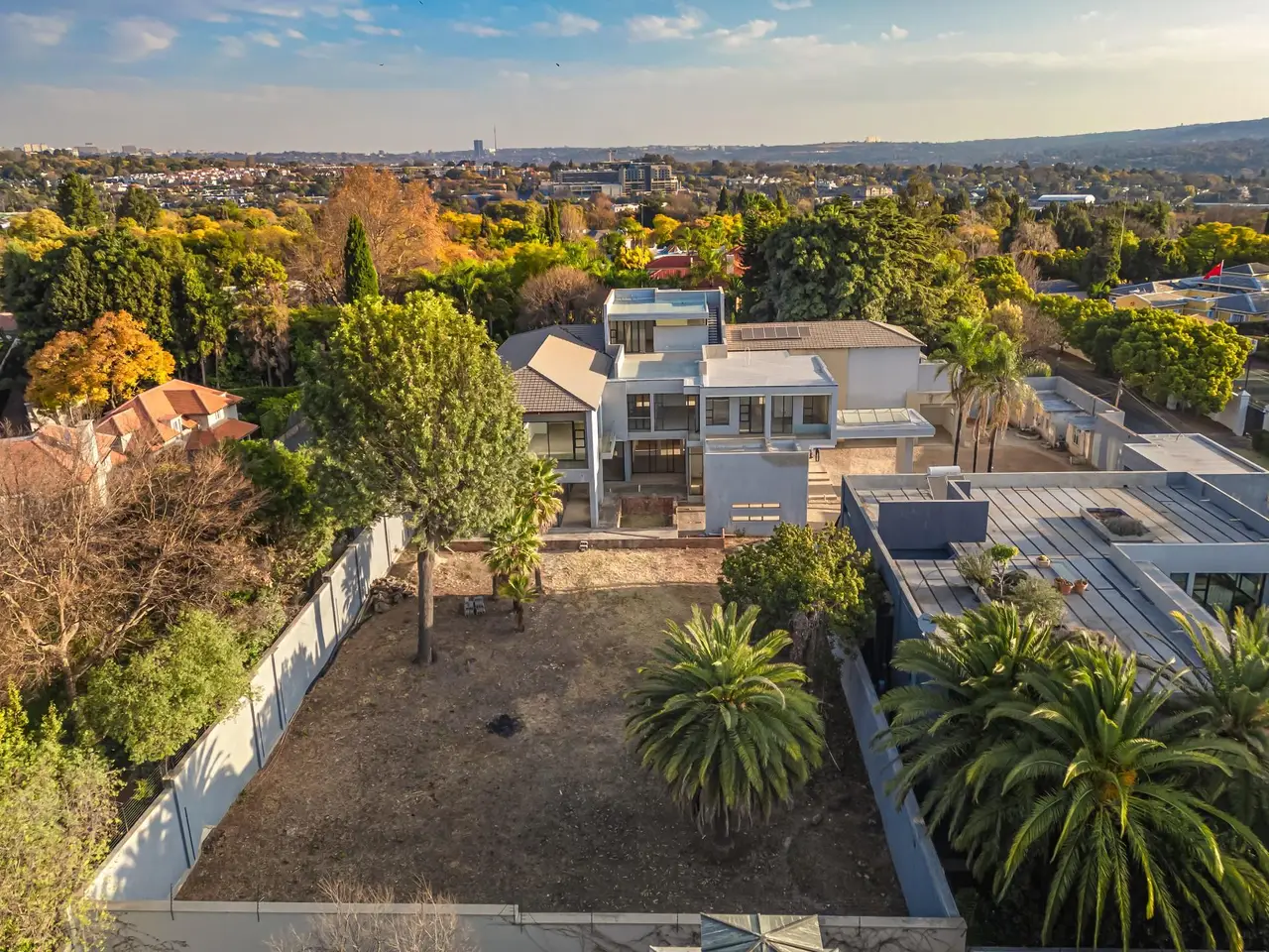 An Incomplete Masterpiece in Sandhurst Built on 3 stands, this incredible home on Cleaveland Road in Sandhurst, with heavenly Sandton skyline views, is waiting for a buyer with the vision to complete it and make it their own haven. Features: - Sleek lines, floor-to-ceiling windows, and double-volume open-plan expansive spaces. - Panoramic perfection with 360-degree Sandton City skyline views and breathtaking sunsets from your very own private rooftop oasis. - 5 Incredibly spacious bedrooms, each with an en-suite bathroom. And more rooms to create more bedrooms if desired. - 5-car garage with additional storage - A light-filled formal lounge leading to the large dining room, both overlooking the swimming pool and garden - Stacker doors to bring the outdoor and indoor living spaces together. - Elevator already built in. - Safe room - Linen closets and storage rooms - Large office with an en-suite bathroom with separate access - Temporary staff quarters built on the property - Double-story guard house - His and her walk-in closets -Pajama lounge on the second floor - Large and light bedrooms with balconies Don't miss out on the opportunity to build your dream home, finished to your taste and spec. Call us today for an exclusive viewing.