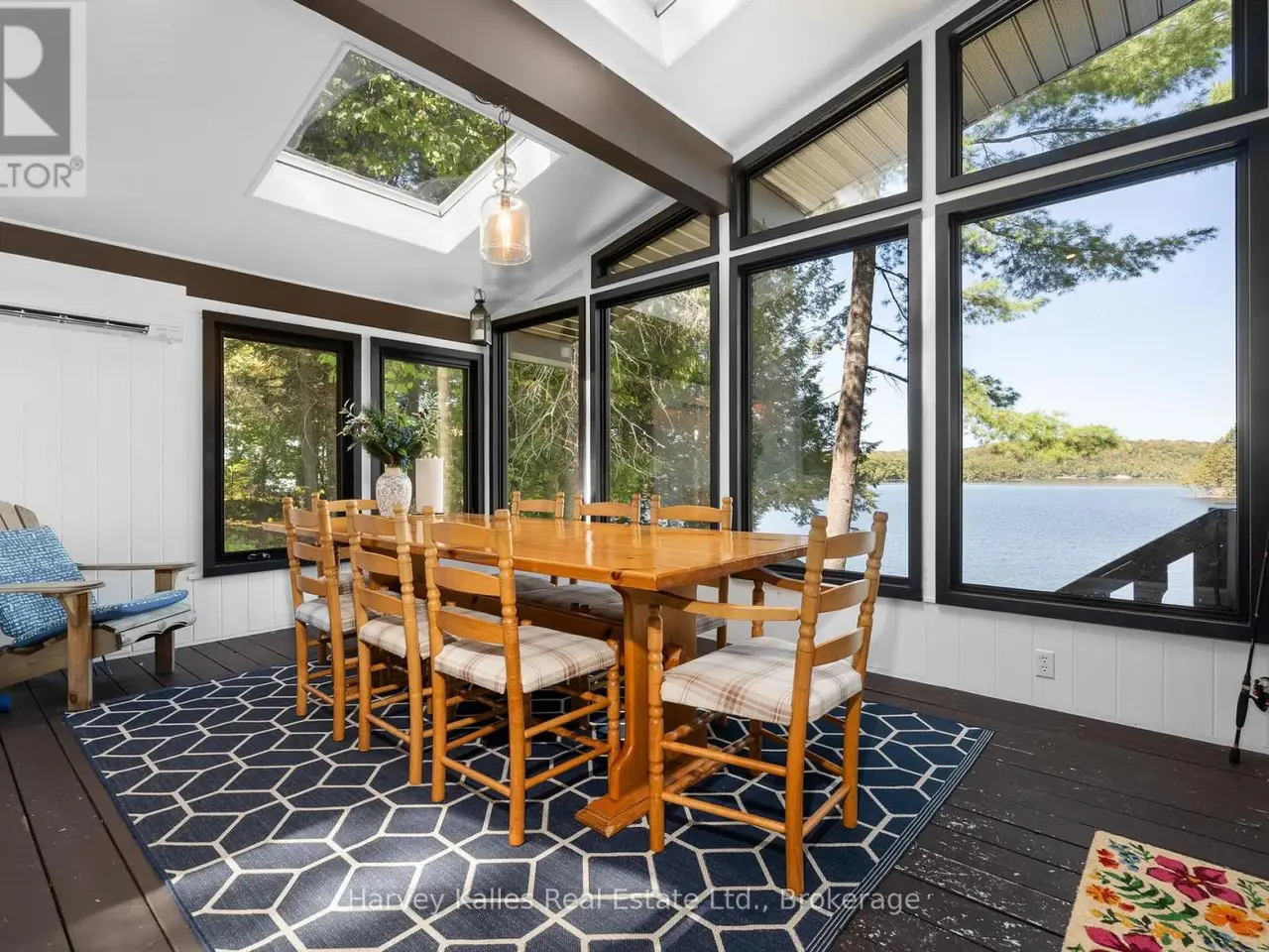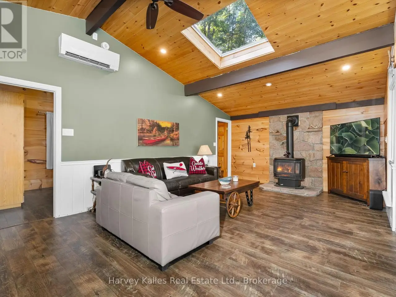 Ready to begin or enhance your cottage adventures? A perfect turn-key waterfront retreat on Kawagama Lake is now available. Boasting 128' of pristine frontage, the sandy, family-friendly entry makes swimming and water fun effortless, while the dock and waterfront storage shed add convenience and charm to lakeside living. Step inside to discover more than 1000sqft on the main floor with three inviting bedrooms and a full bathroom complemented by a sun-drenched Muskoka room that perfectly captures lake views and natural light. Cozy up by the propane fireplace in the living room or host unforgettable gatherings on the lakeside deck overlooking the sparkling waters. The 725sqft walkout basement, features a separate entrance and a newly completed 3-piece bathroom, offering a versatile space for guests, hobbyists, or potential for additional living areas. Car enthusiasts and boat lovers will appreciate the 3-bay garage and ample parking, while a garden and multiple fire pit areas add an extra special touch to this lakeside haven. With a drilled well, year-round accessibility, and every detail to create the quintessential Muskoka experience, this property is more than a cottage. Lakeside memories await! (id:16999)
