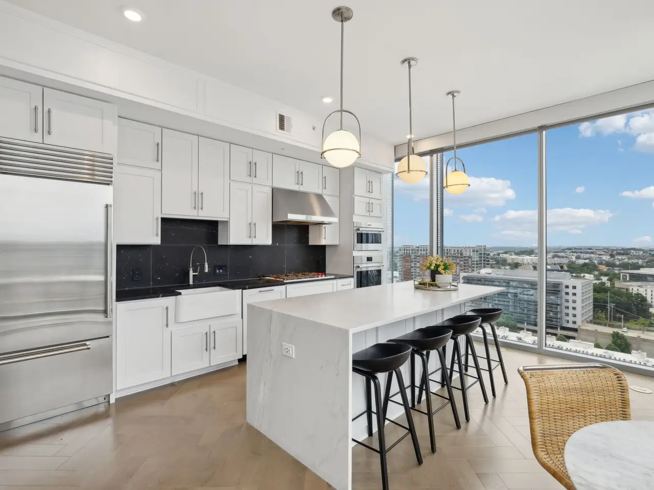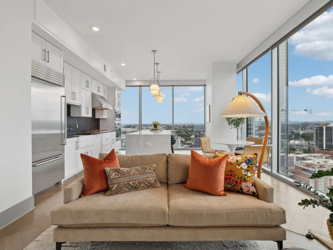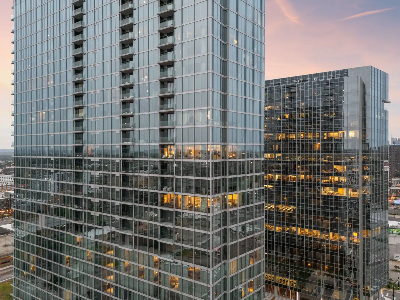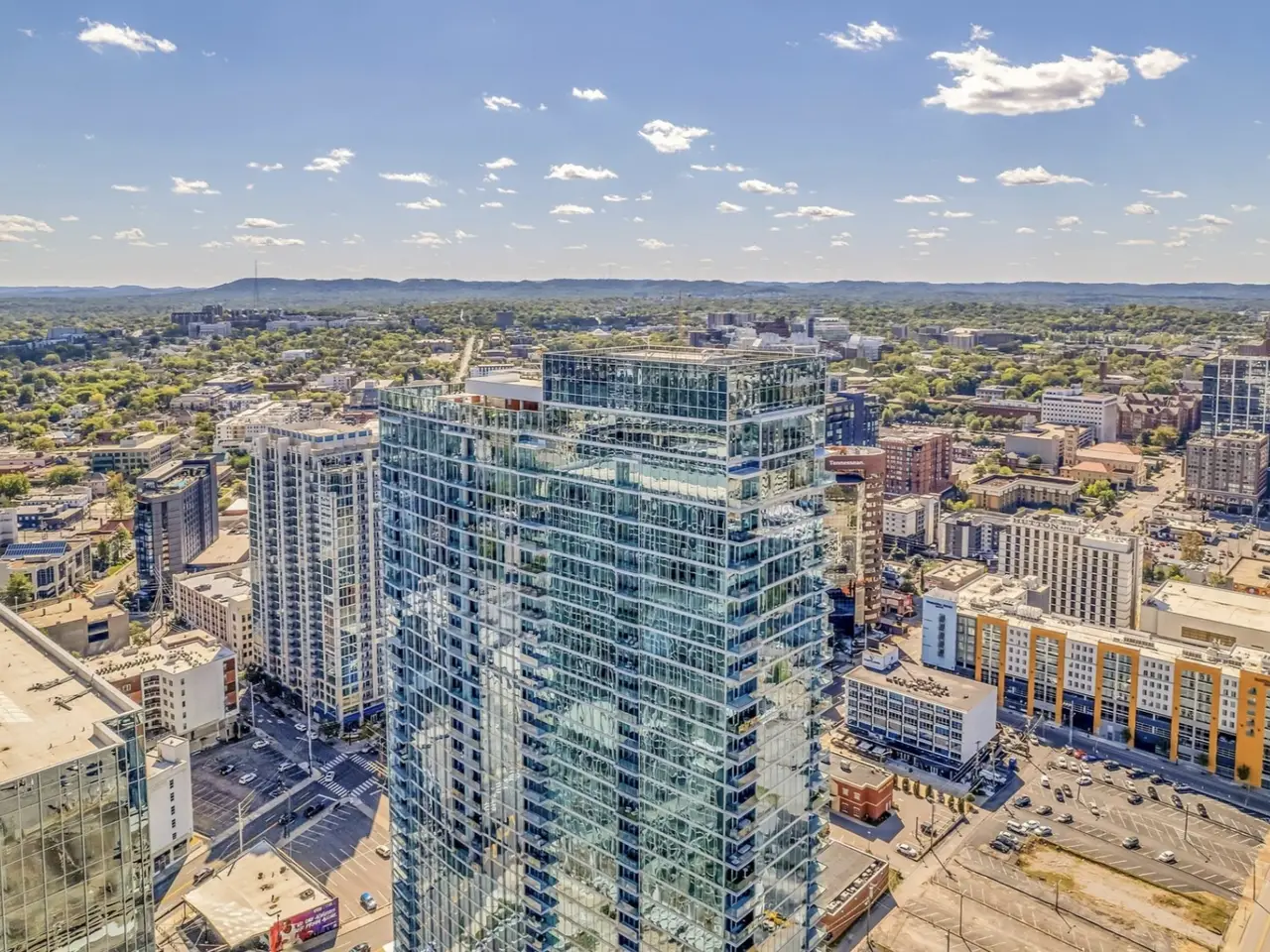 CHECK OUT THE NEW PRICE: Sophisticated and elegant, The Residences at Broadwest truly represent the best in class for midtown luxury. Conveniently located at the edge of downtown but outside the busy "tourist district" this location allows for easy access to the Interstate, downtown Nashville, Vanderbilt, hospitals, as well as a quick commute to the Nashville airport. Floor to ceiling glass and a big walk-out balcony of this 20th floor CORNER UNIT offer unparalleled views of gorgeous sunsets and the city lights of West Nashville. Wolf Appliances and a SubZero refrigerator fit this open concept kitchen perfectly! Marble counter tops and backsplash, remote/automatic blinds, herringbone hardwood floors throughout.. all top of class! 34th floor amenities include rooftop pool and cabanas, library, golf simulator, gym, steam room, sauna and expansive owner's lounge. Exceptional concierge services and security. TWO parking spots included (easy access to elevator!). Hotel services also available from CONRAD include room service, housekeeping, and valet parking.