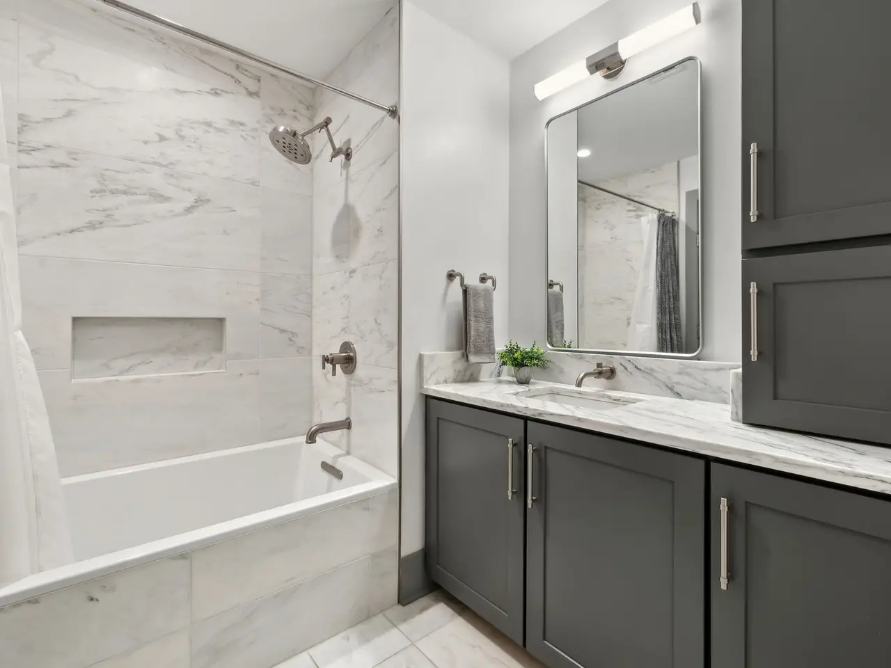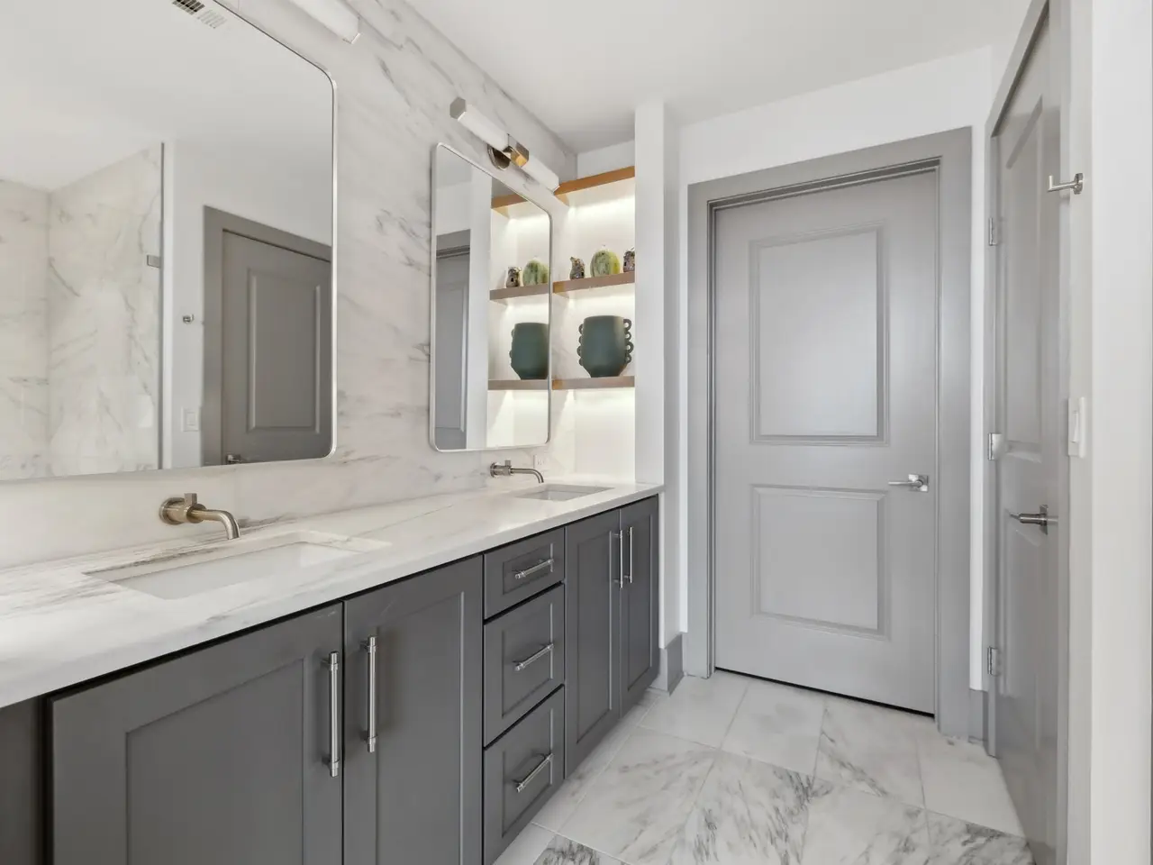 • Marble countertops and backsplash