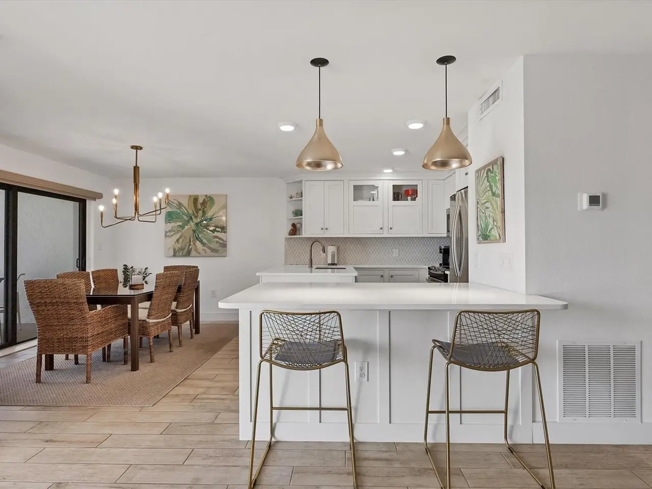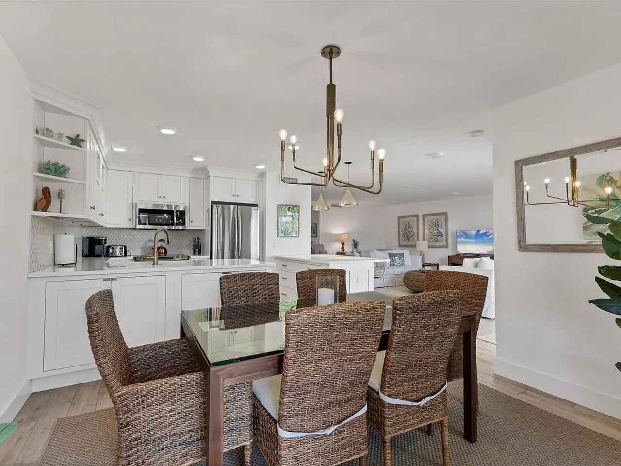 Now's your chance to own a piece of paradise! Breathtaking, pool and GULF views from the extra large enclosed lanai! Renovated down to the studs in 2017 this 2 bed, 2 bath has a completely new layout! Kitchen has new appliances and elegant quartz countertops. Custom Starmark cabinetry with hidden hinges and flush inset doors along with Kohler and Brizo hardware are found both in the kitchen and baths. Primary has large walk-in shower. New light fixtures and recessed ceiling lights. Tile floor throughout looks like wood but durable and easy to clean! Plantation shutters and impact glass on windows and lanai doors. New electric, plumbing and HVAC. Not a detail was missed in this must see condominium! Unit includes a parking space, storage closet and use of golf cart lot. Resort - like amentities include a large heated swimming pool, lighted tennis courts, patios for BBQ's and elevators for easy access. Enjoy walks on Boca Grande's coveted white sandy shoreline, take a golf cart ( included in sale) to the nearby bike path and head downtown to enjoy the many restaurants and shopping or simply relax and watch the sunset from your lanai.
