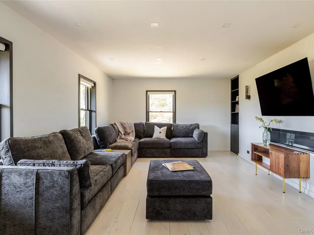Welcome to Slatefield Farmstead, a modern farmhouse set on over ten pastoral acres in peaceful Salisbury Mills. A long private drive leads to the broad-fronted faade of weathered clapboard and a durable tin roof that adds timeless appeal. Once a working dairy farm, the property preserves its historic character while offering every modern comfort. Its location near the Metro-North station means you can be in Manhattan in under 90 minutes, perfect for weekend getaways or weekday commuting without giving up space, privacy, or rural serenity.The 3,000-square-foot farmhouse has open, light-filled spaces and refined details. Wide plank wood floors flow throughout, and vaulted ceilings in the bedrooms create bright, airy retreats. The chefs kitchen features quartz countertops, a commercial-grade range, double dishwashers, and abundant cabinetry. A large dining room sits just off the kitchen, ideal for family meals or holiday gatherings. The family room provides casual space for relaxing, while a private in-law suite with its own entrance offers flexibility for guests or extended stays. Upstairs, the primary suite includes a newly renovated bathroom and hilltop views, and two additional bedrooms each have ensuite baths and convenient laundry access.The home has been upgraded throughout, with systems designed for ease and efficiency. A Lutron lighting system, whole-home Sonos sound, spray foam insulation, and new furnace and septic ensure comfort in every season. Modern essentials like a 26kW generator, water filtration, and security cameras provide peace of mind, while the careful renovations preserve the homes character and craftsmanship.Outdoors, theres room to create the lifestyle youve been dreaming of. A covered front porch overlooks open fields, and a custom stone firepit provides a gathering spot for evenings under the stars. The historic red barn, with two non-operational silos, can be restored for farming, transformed into a creative studio, or used as a social space. The five-bay garage is ideal for car enthusiasts, makers, or anyone who values storage and workspace. With horse paddocks, a pond, and rolling pastures, the property encourages both recreation and relaxation. Nearby, enjoy hiking at Schunemunk and Storm King State Parks, the Moodna Viaduct Trail, cultural visits to Storm King Art Center, and tastings at Brotherhood Winery, the countrys oldest winery. This is a home for those who value space, light, and the freedom to live fully in the countryside while staying connected to the city.