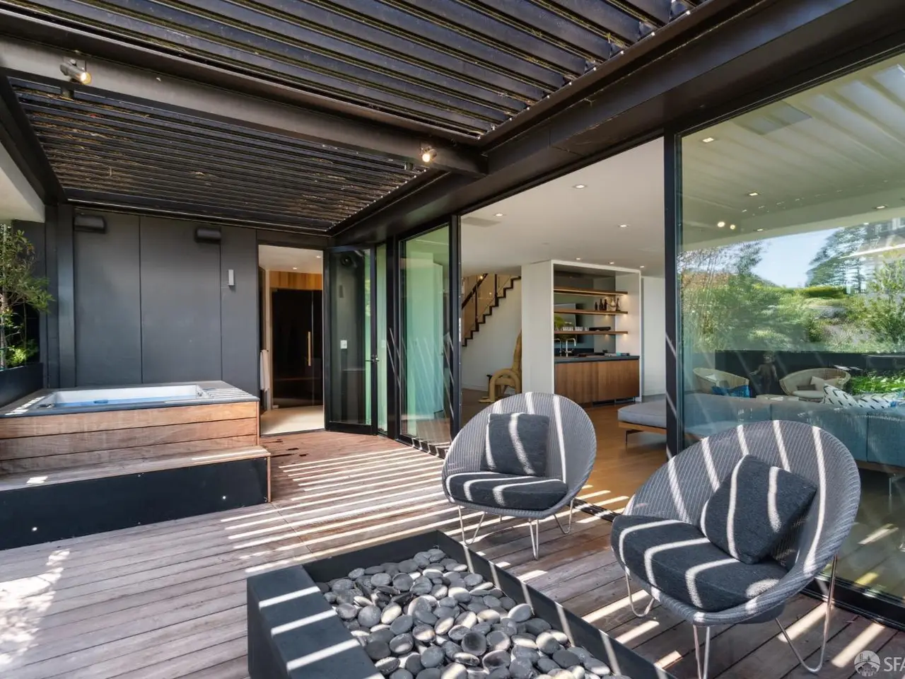 150 Glenbrook Avenue is an architectural masterpiece located on the peak of the Clarendon Heights neighborhood that showcases an exclusive collection of homes at the highest point above sea level in San Francisco. The home was designed by the famed John Maniscalco Architecture firm in 2018 and built by Cook Construction with gardens by Terra Ferma Landscapes Design. This six bedroom, six full and two half bath, four level residence set on a 5,721 square foot lot captures the most powerful and commanding views of the entire city from bridge to bridge and everything in between. The homes open floor plan with floor to ceiling windows on all levels allows the full grandeur of its setting to be realized through the world-class vistas it looks upon. The residence is complete with four en-suite bedrooms on the upper level, multiple panoramic view terraces, a guest suite with private entrance, steam room, cedar sauna, two additional large entertaining rooms with immediate access to the mature garden with firepit and an outdoor spa.