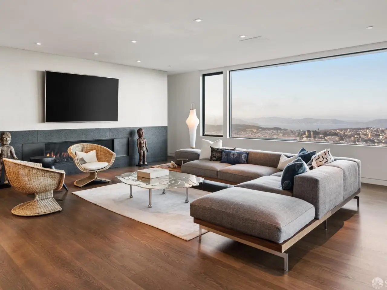 • Floor-to-ceiling windows with panoramic city views
