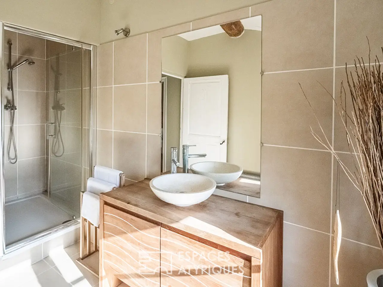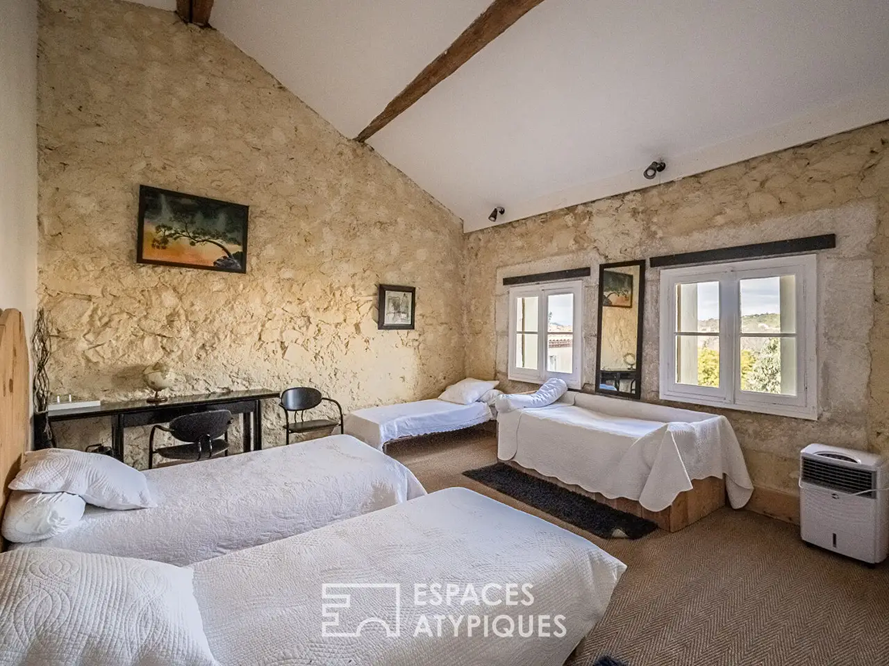 Discover this jewel nestled just 15 minutes from Narbonne and 30 minutes from the Mediterranean Sea. This majestic residence, imbued with undeniable character, will seduce you with its unique character and its generous volumes. Imagine the countless possibilities offered by this extraordinary property: event projects (wedding, reception, etc.), artistic exhibitions, daring cultural projects, creation of new living spaces? An opportunity to highlight your creativity, opening the field of possibilities. Enchanting and welcoming, this residence unfolds like a haven of peace where every corner exudes serenity. Let yourself be charmed by the magic of the place, which is ideal for receiving guests and guests. Here, every moment becomes a celebration of beauty and harmony, making this place an enchanting setting, perfectly suited to exceptional life projects. This timelessly elegant estate, built on a park of approximately 4,450 m2, offers a completely renovated mansion of approximately 550 m2, the first stones of which were erected in the 18th century. From the entrance, the tone is set, like a surface of expression with infinite potential, offering a magnificent backdrop to the original elements which have been staged to magnify them: the woodwork of the dining room and fireplace from the 18th century, the Armissan stone staircase, the Moroccan patio, so many authentic materials which give the character of this vintage wine estate. The property has been respectfully renovated, while daring to adopt a contemporary style for this bourgeois setting, a subtle blend of past and present. The old stable has given way to a large living room of around 100m2 with beautiful openings opening onto a garden terrace overlooking the vines. This living room benefits from a ceiling height of 4 meters with original beams and vaults. The owners, having found a magnificent 18th century wrought iron banister, offered it a beautiful staircase as a setting. An old stone fireplace, with heat recovery, warms the upstairs bedrooms. On this south-facing side, an infinity pool offers a breathtaking panoramic view of the Corbieres massif and its exceptional vineyards. Two completely independent master suites of approximately 50m2 each with PMR access and an outbuilding of approximately 700m2 complete the ensemble. The latter consists of a reception room of approximately 300 m2, an apartment and a large attic of approximately 300m2. A workshop of approximately 110m2 completes the building. It is in a privileged environment that this residence takes place to offer an ideal setting, both as a main residence and as an accommodation and event reception configuration. Carrying out a tourist reception activity throughout the year presents an excellent rental yield. Photovoltaic panels make it possible to be almost autonomous in terms of electricity consumption. A true haven of peace, perfectly maintained and in absolute calm, this property offers multiple species of Mediterranean trees, umbrella pines, olive trees to allow you to stay as close as possible to nature without giving up the proximity of the Mediterranean Sea, around thirty of minutes. In the heart of a region prized for its natural, cultural and culinary heritage, this atypical property stands out as a truly exceptional place. Your preferred contact: Sonia ENERGY CLASS: D / CLIMATE CLASS: A Estimated annual energy expenditure for standard use, established based on energy prices for the year 2015: EUR6,278 Information on the risks to which this property is exposed are available on the Georisks website for the areas concerned. REF. 6917SB Additional information * 13 rooms * 11 bedrooms * 2 bathrooms * 8 shower rooms * 2 floors in the building * Outdoor space : 4550 SQM * Property tax : 4 040 €