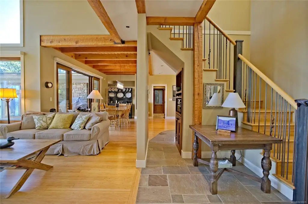Welcome to nearly two acres of waterfront bliss, where natural beauty and tranquility meet luxury coastal living. The architecturally designed three-bedroom home is perfectly positioned to capture sweeping ocean views north toward Tsawwassen—ideal for watching the ever-changing seascape. Launch your kayak or paddleboard or beachcomb along miles of shoreline, steps from your door. Inside, the home is a showcase of artistry and craftsmanship, featuring a chef’s kitchen, soaring vaulted ceilings, and floor-to-ceiling windows that flood the space with light and panoramic views.Enjoy cozy evenings by the focal stone fireplace or the charming wood stove. Unique features include a custom “dog” bath, a bunk room, and high-efficiency geothermal heating and cooling. Generator runs essentials in a power outage. Step outside to the expansive tiered deck, with a built-in stone fireplace and beautifully designed, low-maintenance landscaping. Upscale casual comfort meets nature in perfect harmony!
