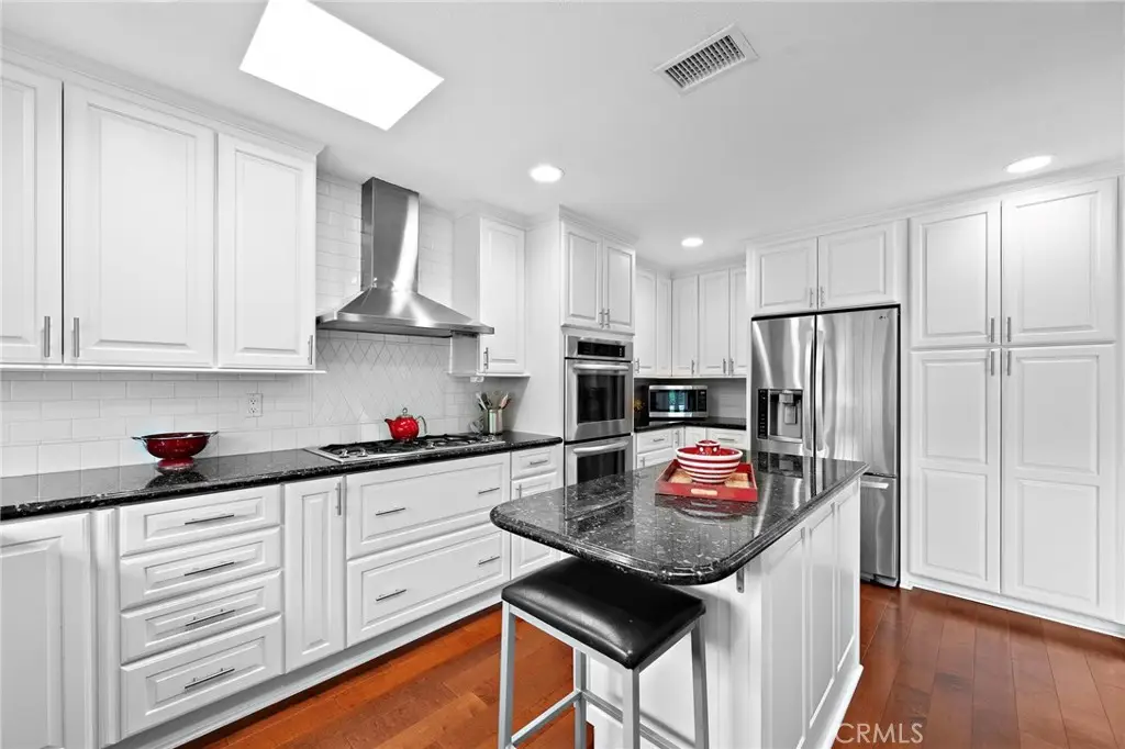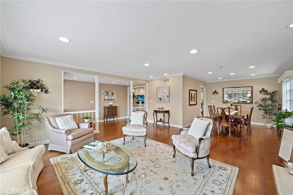 Located Just Moments From The Neighborhood Park And Bike Trail, This Stunning Residence Offers 5 Bedrooms, 3 Bathrooms, And Over 2,800 Sq. Ft. Of Thoughtfully Designed Open Concept Living Space -- Including A Primary Suite Conveniently Located On The Main Level. The Downstairs Showcases Custom Hardwood Flooring, Recessed Lighting, Crown Molding, and French Dual Pane Windows, French Doors, and Custom Silhouette Blinds. This Magnificent Estate-Style Home Boasts Gorgeous Curb Appeal with Brick Hardscape and Professional Landscaping. Double Entry Doors Open to a Formal Foyer, Elegant Formal Living Room with Marble Fireplace and Formal Dining Room which Flows Seamlessly into the Large Family Room with a Cozy Raised Hearth Fireplace, Custom Built-In Entertainment Center, and Breakfast Nook. The Gourmet Kitchen Has Been Professionally Expanded And Remodeled With Granite Countertops, Subway Tile Backsplash, Soft-Closing White Shaker Cabinetry, Stainless Steel Appliances, Skylights, And A Custom Island With Bar Seating. A Large Bay Window Overlooks The Garden, Flooding The Space With Natural Light. Also On The Main Floor Are Two Highly Desirable Guest Bedrooms And A Full Bath with Dual Sinks. Upstairs, You'll Find Two Oversized Bedrooms, One with Built-In Desk, and A Full Guest Bath with Dual Sinks. Additionally there is a Gigantic Walk-In Storage Closet which Could Almost be a Bonus Room. Additional Highlights Include Dual-Pane Windows Throughout, Central Air Conditioning And Heating, Copper Plumbing, Raised Panel Interior Doors, Mirrored Closets, And Direct Access To A Fully Finished Garage Complete With Abundant Storage, A Workbench, Pull-Down Attic Access, And Epoxy Flooring. Conveniently Located Near Beach, Shopping, Parks, And Award-Winning Schools, This Home Truly Reflects Pride Of Ownership.
