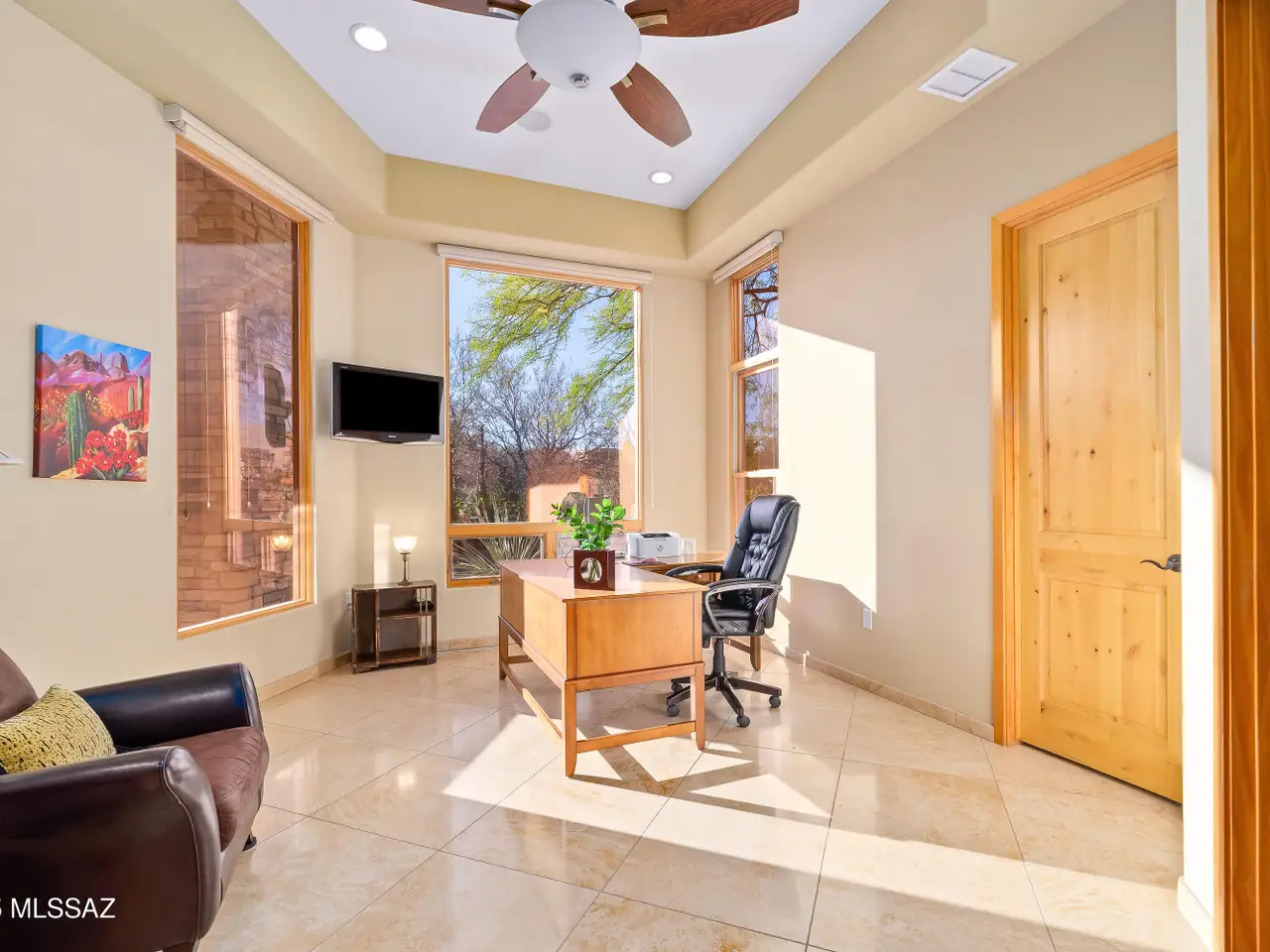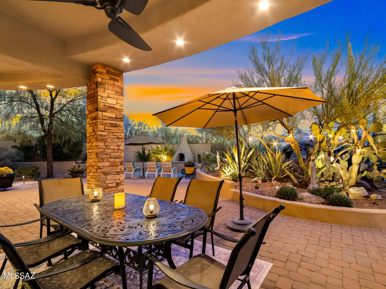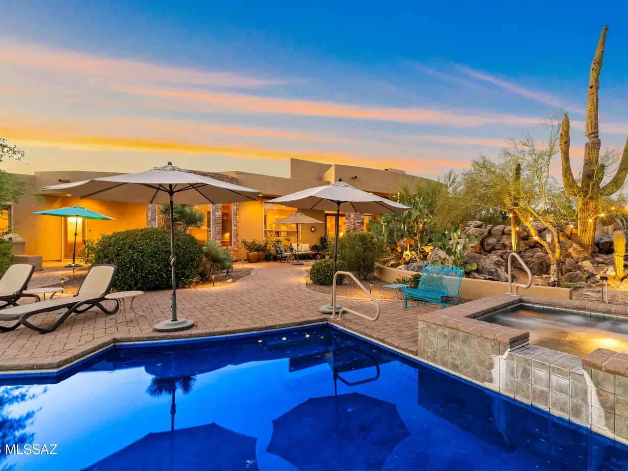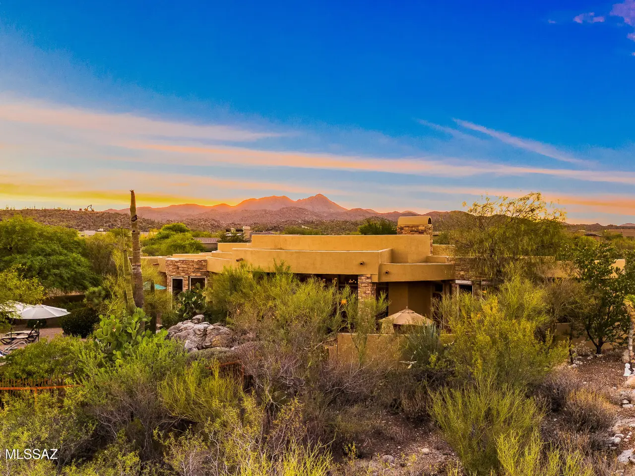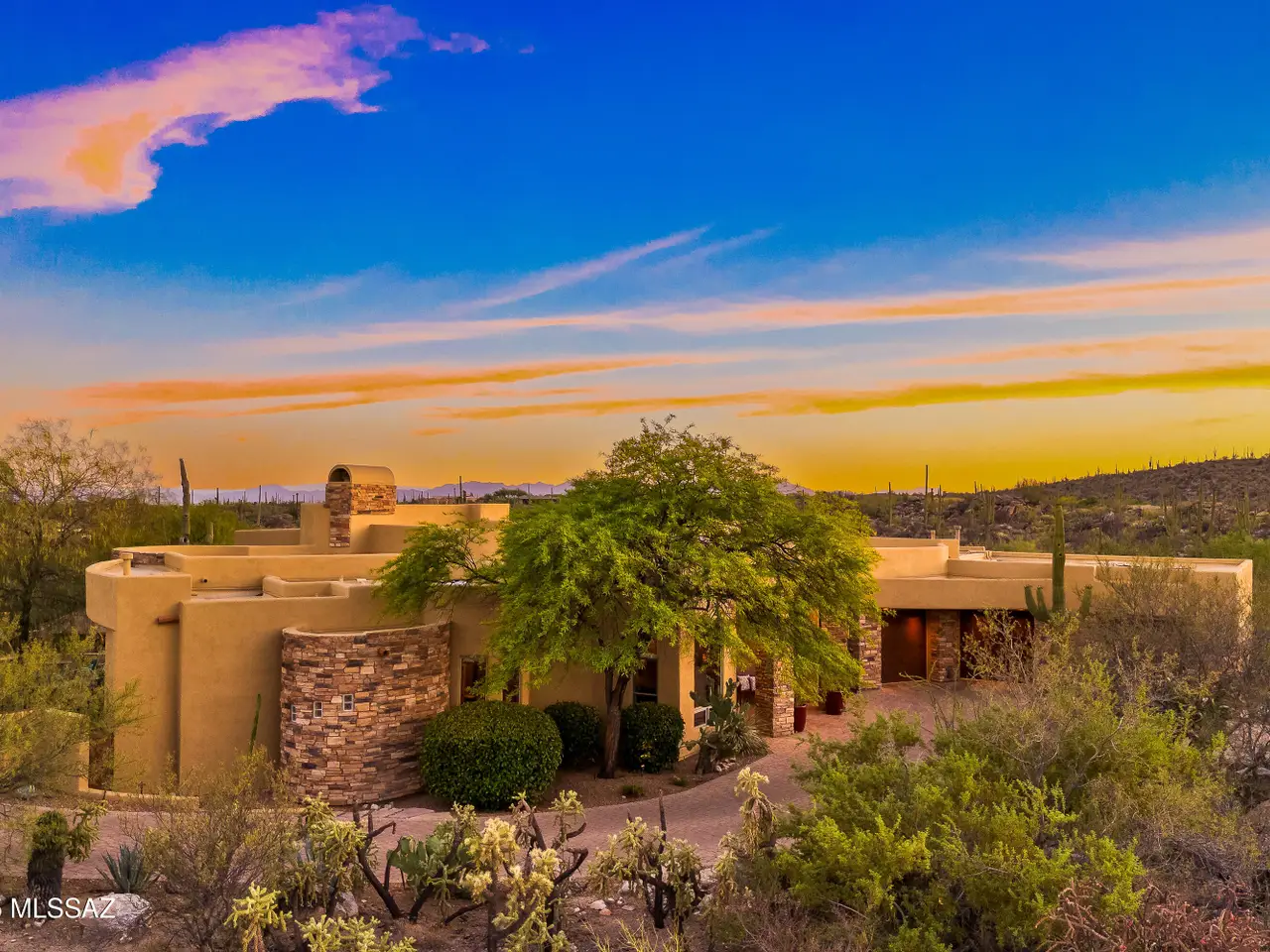Located in the prestigious guard gated community of The Estates at Honey Bee Ridge, this 4, 040sf 4BR/4 1/2BA custom soft contemporary home is nestled among dramatic rock outcroppings and towering saguaros, offering breathtaking views of the Catalina Mountains and Pusch Ridge. A paver driveway leads to the home, where elegant, stacked rock finishes set the tone for the refined design within. Thoughtfully crafted with comfort and sophistication in mind, the residence features expansive walls of windows that beautifully frame the surrounding desert landscape. The kitchen showcases rich natural materials, including cherry wood cabinetry, granite countertops & spacious center island w/ 5-burner gas cooktop, stainless appliances, double ovens & casual dining nook highlighted by a curved wall of windows. Each generously sized bedroom includes its own en-suite bathroom, ensuring privacy and comfort for family and guests. The great room is centered around a cozy fireplace and wet bar, complete with additional cabinetry and countertops perfect for entertaining. A formal dining room offers a classic setting for special occasions. Luxurious primary suite is a true retreat, featuring a circular alcove entry w/niches romantic fireplace, a large sitting area w/panoramic views, jetted tub, large separate walk-in shower & spacious walk-in closet. Step outside to the resort-style backyard, where you'll find a solar-heated pool and spa with an in-floor cleaning system, a large covered patio, paver and flagstone walkways, a built-in BBQ & gas Kiva fireplace with banco seating all set against professionally landscaped grounds designed for relaxation or entertaining. Oversized 3-car garage has storage cabinets. A heart-shaped labyrinth is your own private Zen sanctuary; a space to center yourself and reconnect. Walk its winding path as a form of moving meditation or simply rest on the bench and allow yourself to absorb the peaceful energy of the Universe. This location offers immediate access to Honey Bee Canyon Park and nearby walking and biking trails, including The Vistoso Trails Nature Preserve with 6.2-mile, eight-foot-wide concrete path and The Loop, a 138-mile paved trail system throughout Tucson. Just minutes away, the Stone Canyon Club offers golf, fitness, and social memberships, featuring a top 100 ranked course and world-class amenities. Also nearby is Catalina State Park, perfect for hiking, birding and horseback riding. And Oro Valley Market place is just minutes away with open-air shopping, dining, Movie Theatre & on weekends evenings of live local music. This is more than a lot, it's a lifestyle. A rare opportunity to build your dream home in one of Oro Valley's most desirable communities with a prime location, endless desert views and exceptional lifestyle amenities. Just minutes away, the Stone Canyon Club offers golf, fitness, and social memberships, featuring a top 100 ranked course and world-class amenities where members have the option of golf or social memberships. The Golf Membership offers access to a championship course, state-of-the-art fitness center, clubhouse amenities, fine dining, locker rooms, and a full calendar of club activities. The social membership provides the same exceptional benefits, excluding golf privileges. Don't miss this rare opportunity to live in luxury, surrounded by natural beauty and enhanced by world-class amenities.