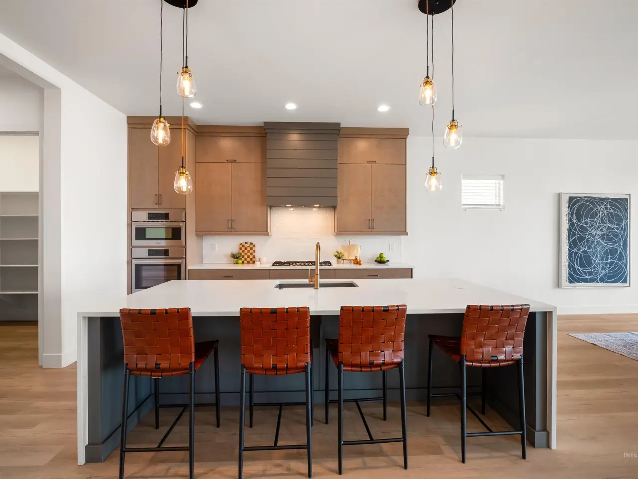 • Chef's kitchen with waterfall quartz counters