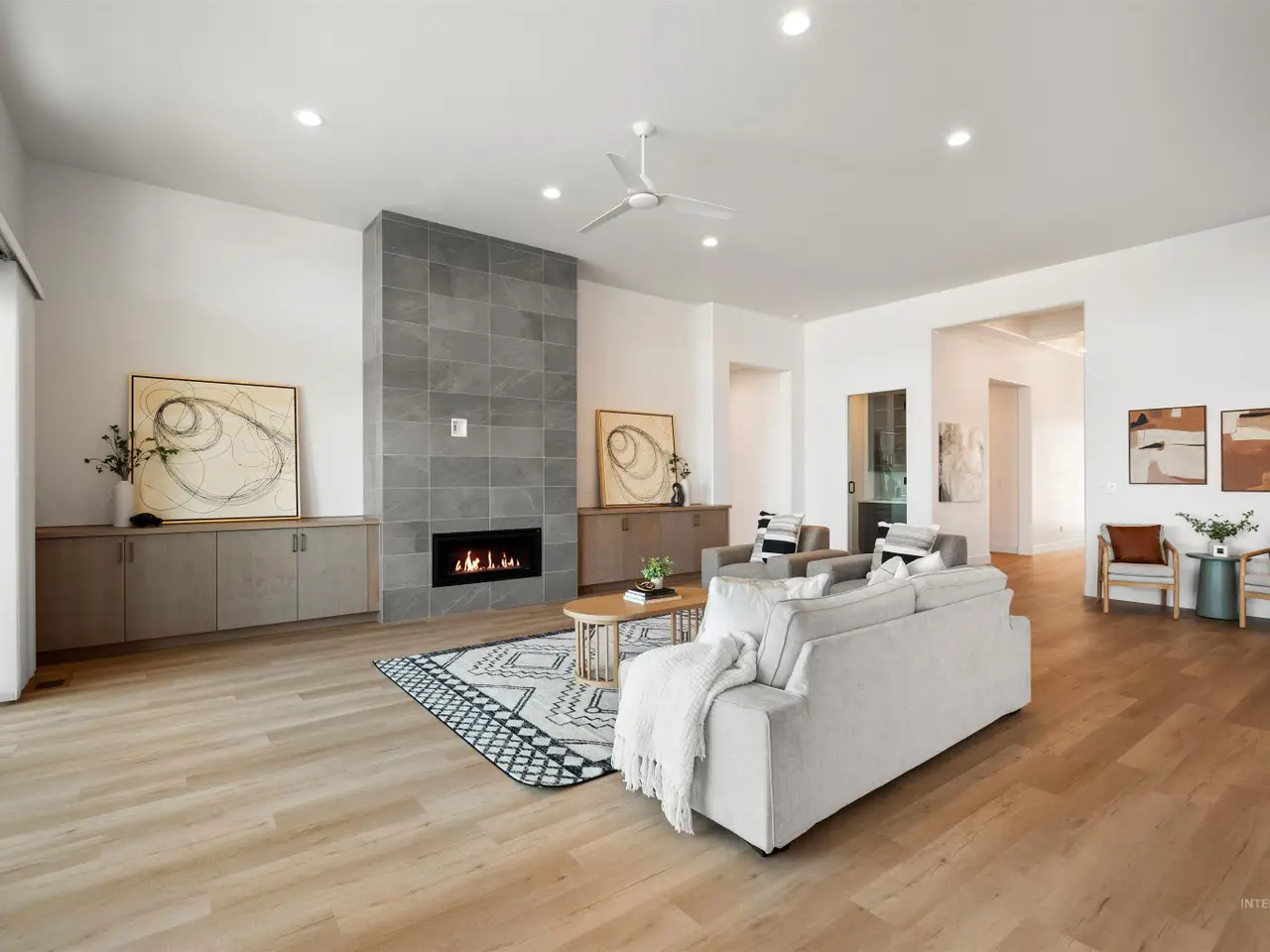 • Fireplace with luxury vinyl plank flooring