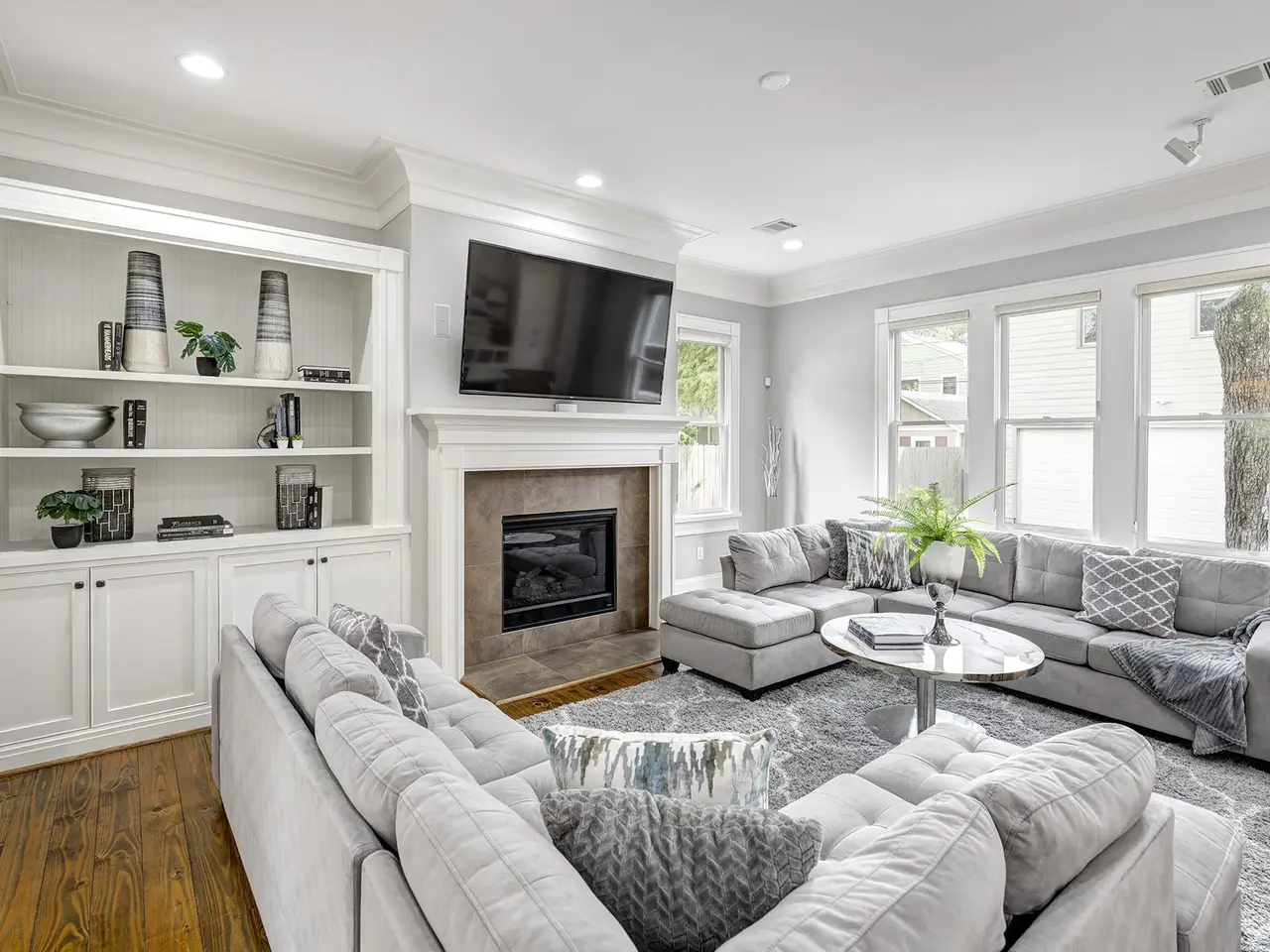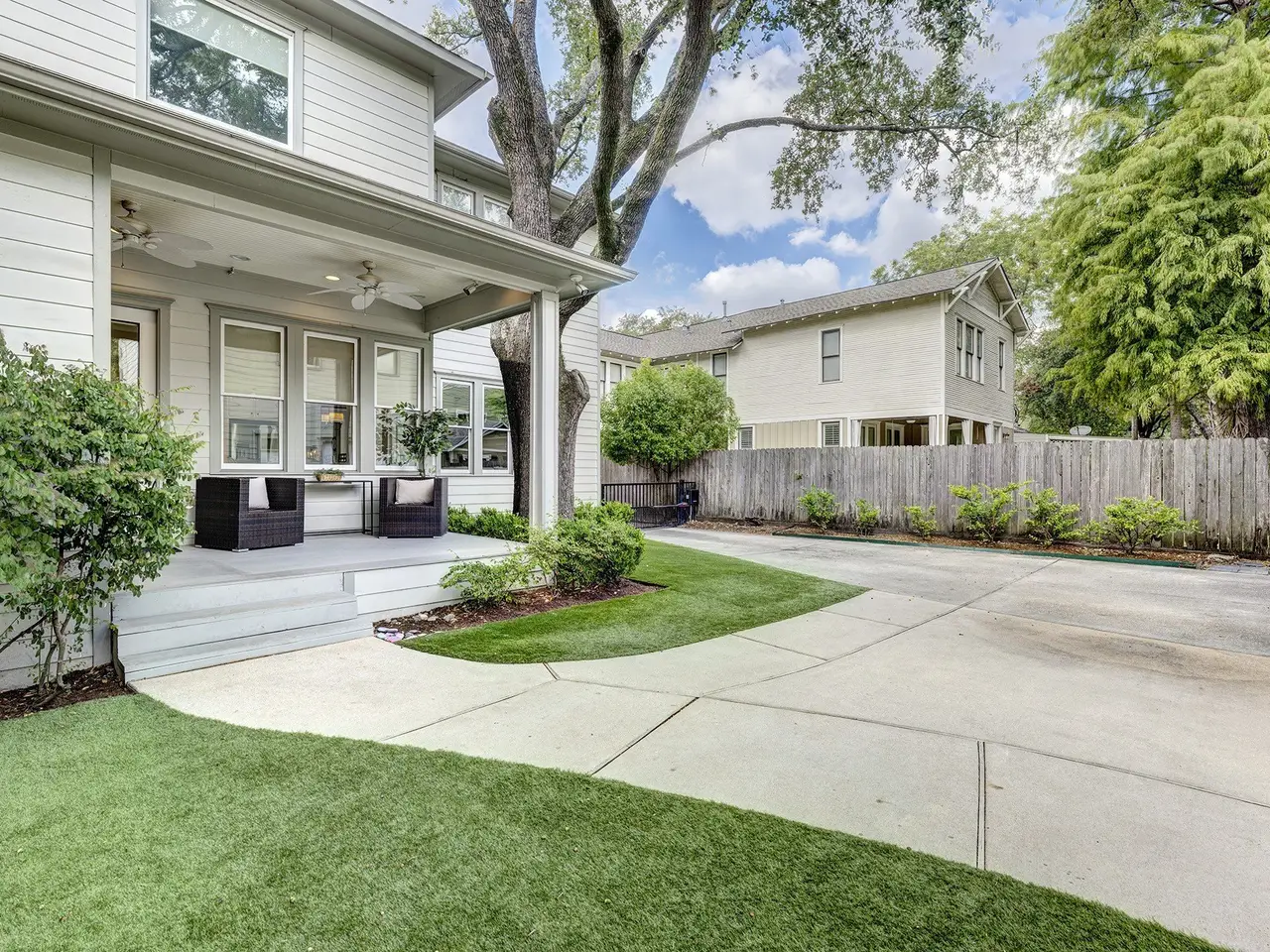 Spectacular 4 bed/4.5 bath home + garage apartment over an oversized 2 car garage. 7,500 sf lot (per HCAD)! Fenced yard with extra driveway parking/double automatic gates. Large entryway foyer leads to the front living/dining rooms. Gourmet kitchen features marble counters, s/s appliances, island, mudroom/pantry along with adjoining breakfast and family rooms. Bedroom with full bath + powder bath complete downstairs. Primary bedroom up is a true retreat with large walk-in closet and luxurious spa-like bath which offers double sinks, soaking tub & walk-in shower. Two nice-size secondary bedrooms, 2 full bathrooms, gameroom & laundry finish off the 2nd floor. Covered back porch with outdoor kitchen and stand-by generator. Backyard with turfed greenspace will accommodate your outdoor activities. Garage apt. includes large living area, kitchen, full bath and central HVAC system. Zoned to Harvard El. (buyer to verify eligibility) & close to area shops, restaurants, parks, trails & library.