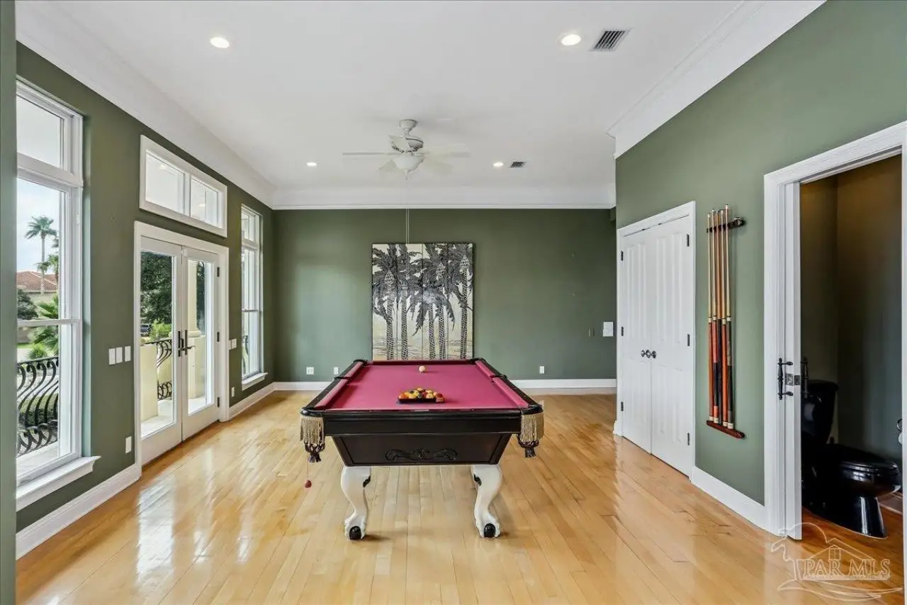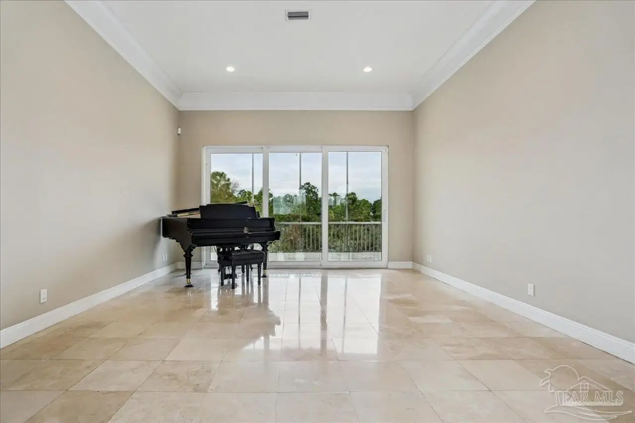 Escape to this peaceful serene atmosphere as you enter into this stunning home nestled along the 17 acres nature preserve of picturesque coastal forest and amazing views of Santa Rosa Sound and the Intercoastal Waterway. This property includes a piece of property across the street which makes for easy access down to the beach and waterfront. Many upgrades include water filtration system, a full-house generator, electric storm shutters, geo-thermal HVAC, surround sound speakers, security alarm, 2 dumb waiters, one located on the back of the home outside which serves as an elevator for people unable to use the stairs and one located inside off the garage that opens near the kitchen, great for transporting groceries! Luxurious and opulent with lavish features, such as travertine natural stone floors, decorative black iron railing encasing beautiful wood stairs, soaring ceilings, private screened balcony, gunite pool with spill-over hot tub, gourmet chef's dream kitchen featuring walk-in pantry, high-end stainless-steel appliances, gas-cooktop and top of the line refrigerator. Enjoy many rooms for entertaining and living including a large game room, office, theatre room, craft room, exercise/gym room, ensuite for guests and spacious owners ensuite with walk-in closets. The seamless transition from inside to outside makes perfect for entertaining guests off any of the well-appointed balconies or relaxing with friends and family around the sparkling pool w/ hot tub. This exceptional property located mere steps away from the Shoreline Park includes additional recreational opportunities such as paddle sports, trails for hiking, fishing, and a place to launch your own boat! Living here will not disappoint!