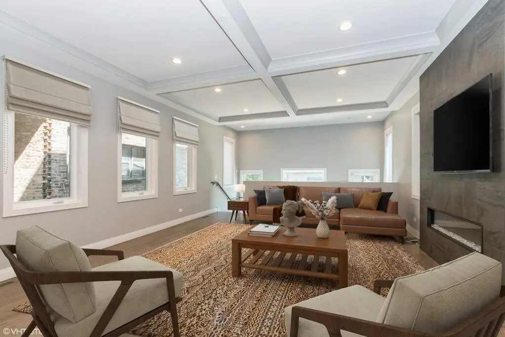 This stunning custom-built 5 bedroom/ 4.1 bath mansion with a plethora of natural light and expansive outdoor space on prestigious King Dr. An absolutely spectacular masterpiece that is located in the iconic Bronzeville neighborhood, steps away from University of Chicago, IIT and DuSable Museum. Expansive main living space with dining area with tray molding and uplighting leads to butler's pantry. A beyond exceptional modern designed kitchen that is appointed with upgraded custom 63 inch cabinetry, under cabinet lighting, quartz countertop, 10-foot island with waterfall island and loaded with Thermador appliances. Family room has oversize windows, a stately fireplace, coffered ceiling leads to a rear mudroom that walks out to a large patio with direct access to a 2 car garage with EV charging capability. Three (3) bedrooms on second floor including luxurious primary suite with large windows, balcony, two (2) walk-in closets, and spa like master bathroom with heated floors and dual sinks. Well appointed "Jack and Jill" bathroom connected to breath-taking 2-story loft area with 14' ceiling leads to the third floor recreational area. Top level equipped with full bathroom and recreational room with wet bard and sliding doors so you can get away from it all on this oversized rooftop deck with Trex prewired for sound with tree top/ city views. Large lower level with theater room including wet bar, 2 spacious bedrooms, full bathroom, laundry room and plenty of space for your storage needs. Additional features that owners upgraded from developer include hardwood floors, glass railing, designer selected lighting throughout, high end tile selection, upgraded closet systems, zoned heating/cooling, sump pump & ejector pump with drain tile system. ACCESS LOCATION: Proximity to highway 90 / 94 Kennedy Expressway & Lakeshore Drive, close to Green Line Train Station. METRA & CTA Bus Stop and less than 15 minute to downtown Chicago. SHOP AT: Mariano's, Whole Foods, Hyde Park Produce & Trader Joe's. ACCESS TO GREEN & NATURAL SPACES: Blocks from XS Tennis & Education Foundation, Washington Park w/ jogging trails, baseball field, tennis courts, & mature trees. Welcome to this magnificent home!