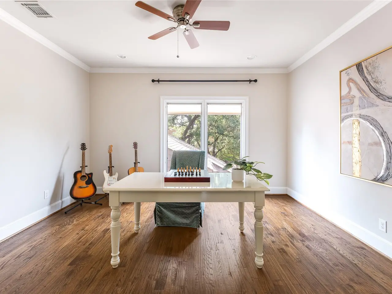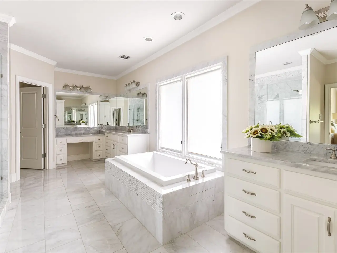 Welcome to this warm and inviting home, perfectly situated just steps from The Hockaday School and located in the desirable Hockaday Neighborhood. Nestled on an elevated corner lot at Shady Hill and Hallmark Drive, this .379-acre property offers both privacy and a walkable, family-friendly setting. With numerous and thoughtful seller updates, a versatile floor plan, and abundant natural light, this move-in-ready home is truly a rare find. The main level begins with a sun-filled living room flowing seamlessly into the formal dining roomideal for hosting large or small gatherings. The dining room enjoys windows on two sides. At the back of the home, the updated kitchen boasts crisp white cabinetry, beautiful and durable Porcelain counters, and high-end appliances, opening to a breakfast nook and casual living space. Just a few steps down, the game room provides a flexible retreat with windows on two sidesperfect for media, play, or entertaining. Upstairs, three generous secondary bedrooms each include large closets and en-suite baths. One suite offers the option of a second primary, guest quarters, or nanny suite with larger walk-in closet and spacious bath with dual vanities. Just a few steps higher, the serene primary suite features vaulted ceilings, dual walk-in closets, a private office, and a spa-like bath with marble counters and floors, dual vanities, soaking tub, and separate shower. Outdoor living is equally inviting, with a large covered patio accented by vaulted wood ceilings, fireplace, built-in TV, and plenty of room to entertainall overlooking the grassy backyard. A circle driveway plus an attached two-car garage provide ample guest parking and convenience. Another perk is voluntary membership in the Hockaday Neighborhood Assoc., with different levels of membership, from neighborhood activities to security patrol. This home offers an ideal opportunity to live close to top-rated schools while enjoying a welcoming neighborhood atmosphere.
