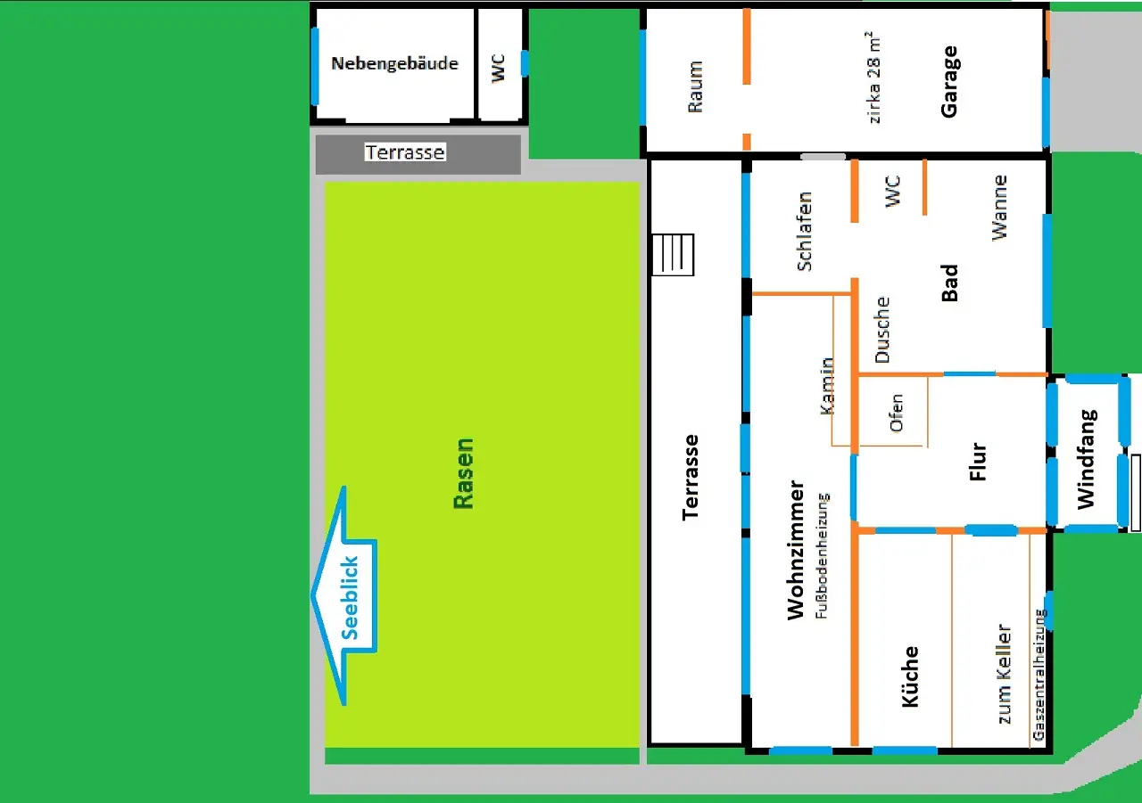 The dreamlike lake property with a wide shoreline is located in the unique nature reserve in Heidesee, Streganz district, about 35 km from the gates of Berlin. The holiday guesthouse with a sunny south-facing terrace has a garage extension on the right-hand side and was built in 1968. There is another outbuilding on the property. The property includes a solid jetty. The park-like property of about 943 m² is tastefully laid out and fenced. The property includes rare plants, a marble driveway, statues and landscaped paths. Wastewater is disposed of in a certified septic tank. NOTE: This is a recreation area or recreation property (location in the open air according to Section 35 of the Building Code). Position LOCATION/TRANSPORT: Streganz is located around 25 km southeast of the city limits of Berlin. The municipality has a train station with regional trains to Berlin and Dresden. By train, you can get to Berlin's Alexanderplatz in an hour. The A12 federal highway, Friedersdorf junction, can be reached directly. The Schönefelder Kreuz can be reached in just a few minutes with the Berlin city highway A 113 or the A 13 towards Dresden. Friedersdorf also has a glider airfield. The new BER airport is around 25 minutes away by car and Berlin city center is around 35 minutes away by car. A bus line runs regularly to the Königs Wusterhausen S-Bahn station. Königs Wusterhausen is connected to the Berlin S-Bahn ring. ECONOMY/INFRASTRUCTURE: The municipality of Heidesee and all its districts offer a good infrastructure with daycare centers, schools, medical care, cultural and sports facilities. The town of Friedersdorf itself has a bakery, flower shop, drinks market, Raiffeisen hardware store, hairdresser, drugstore, farm shop, two restaurants and a physiotherapy clinic. The TESLA Giga Factory opened its doors in 2021 and expects around 10,000 jobs in the medium term. The opening of Berlin Brandenburg Airport (BER) has created many jobs. LEISURE/NATURE: Streganz, now part of the municipality of Heidesee, is located around 25 km southeast of the Berlin city limits in the Dahme-Spreewald district. Here is the approximately 300 hectare "Skabyer Torfgraben" nature reserve. The body of water is embedded in the East Brandenburg heath and has many attractive lakes. Otters, kingfishers, cranes and sand lizards can be found here. parking space 1 x garage