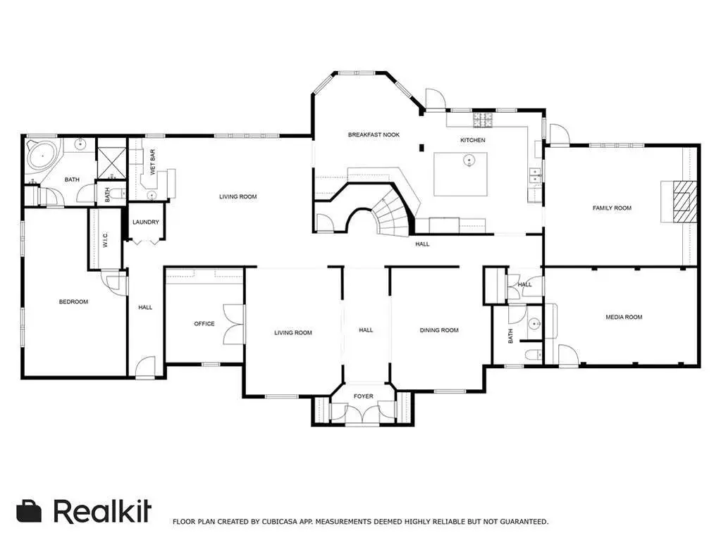 Refined luxury meets resort-style living in this extraordinary 6-bedroom, 5.5-bath European style estate, set on nearly five private acres in the heart of Smyrna. Offering close to 7,000 square feet of beautifully designed living space, this home is the perfect blend of elegance, comfort, and functionality. With a newer roof and a spacious four car garage, the property has been meticulously maintained and thoughtfully upgraded throughout. From the moment you step inside, you're welcomed by a grand chisel stone arch hallway and a dramatic spiral staircase that immediately sets the tone for the craftsmanship and detail that define the home. Imported Italian tile flows underfoot, leading you into the heart of the home a custom-designed chef's kitchen featuring a large island with counter seating, prep sink, custom cabinetry, and stainless steel appliances. The kitchen opens into an inviting informal dining space with a built-in bar, creating an ideal layout for entertaining and everyday living. The main level also features a bright and airy living room filled with natural light, a formal dining room, a cozy great room, a laundry closet, a versatile multi-use room, and a private bedroom with ensuite bath perfectly suited for a nanny suite, in-law suite, or guest accommodations. Movie nights are elevated in the private, theater-style media room, complete with surround sound, a projector, and tiered seating for the ultimate in-home cinema experience. Just beyond the living spaces, step out into your own personal backyard resort. Lush, manicured landscaping surrounds the saltwater pool, jacuzzi, covered outdoor fireplace, firepit, and basketball court offering endless opportunities for relaxation, entertaining, and recreation. Upstairs, the expansive owner's suite is a true sanctuary. Vaulted ceilings and large windows create an open and serene environment, while the luxurious en-suite bath features a soaker tub, walk-in shower, and an oversized custom closet. The suite al