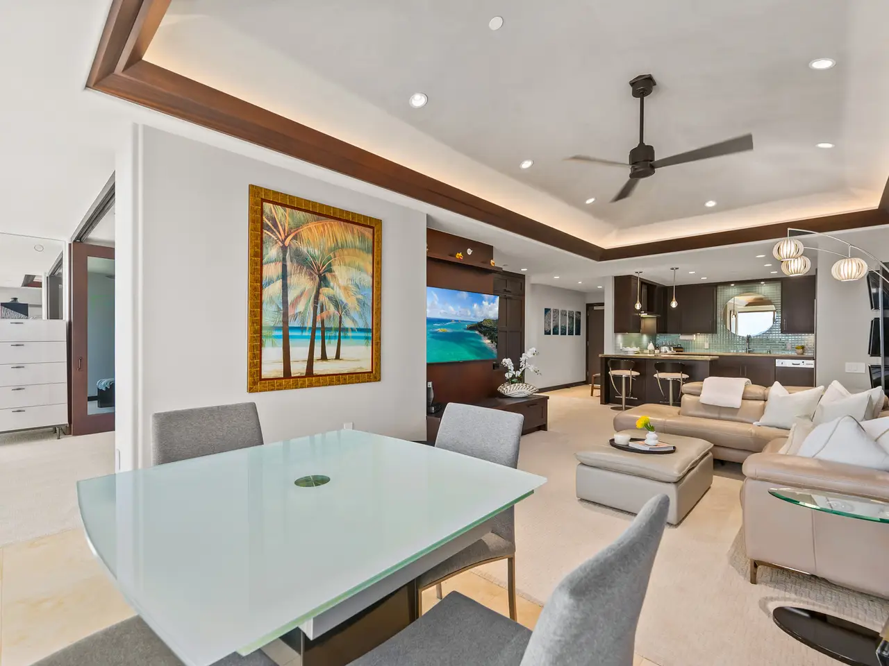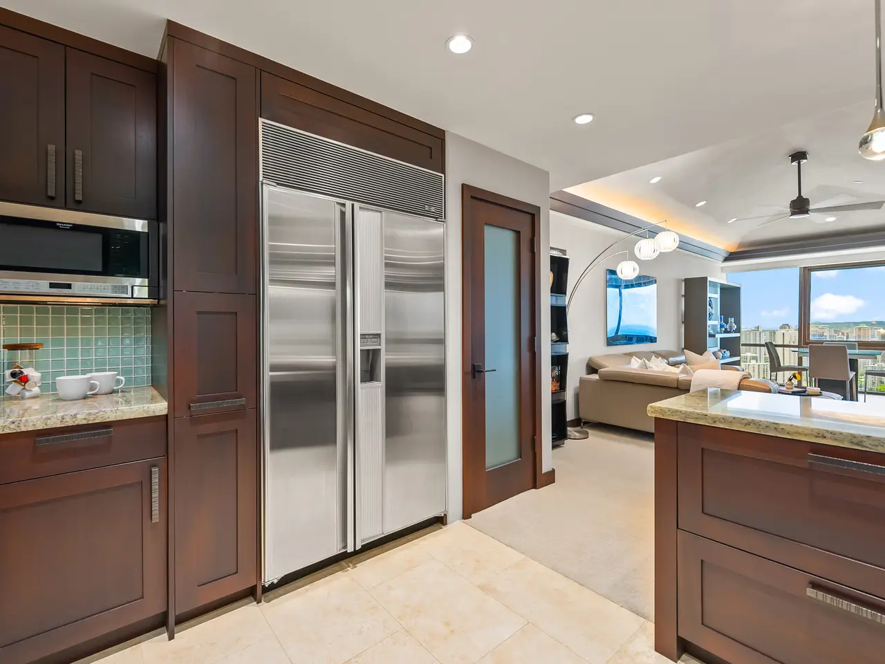 A Rare Opportunity for Elevated Island Living – 44th-Floor Residence in Hawaiki Towers. Experience luxury in this exquisitely renovated 2-bedroom, 2-bathroom residence perched on the 44th floor of the coveted Hawaiki Towers. Expansive floor-to-ceiling windows in living and bedrooms. This stunning home offers panoramic views of Magic Island, Ala Moana Beach Park, sunsets over Diamond Head, and the Koolau slopes. This fully furnished and redesigned (2006/2014) unit offers the perfect blend of luxury, convenience, and breathtaking views. Two secured covered parking stalls and storage, this home provides unbeatable comfort and functionality. Custom high-end finishes, including sapele wood cabinetry, gourmet kitchen, and a primary suite to enhance the refined living experience. Resort-style amenities make this property truly exceptional. The infinity-edge pool & spa offer a perfect place to relax, and the pickleball & tennis courts offer a great way to stay active. Located across from Ala Moana Center and just steps from the beach, this unit provides an unbeatable island lifestyle, where everything you need is right at your doorstep. Se Owner is Licensed HI Realtor